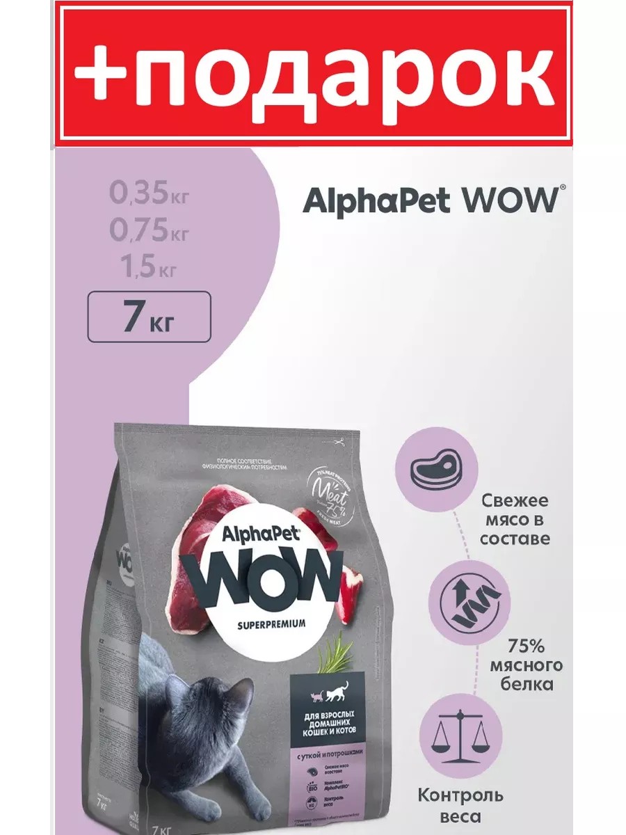 AlphaPet WOW для кошек с уткой и потрошками 7 кг