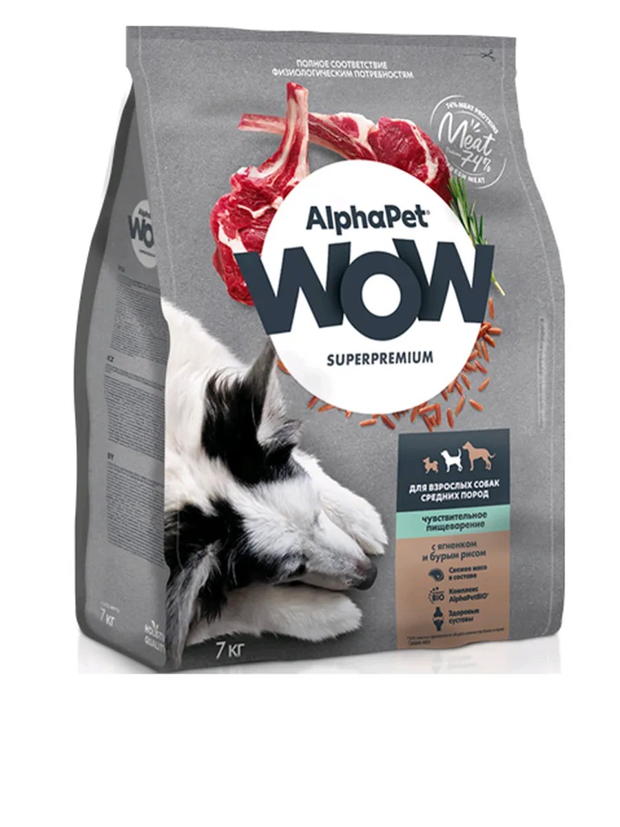 AlphaPet WOW для собак средних пород с Ягненком и бурым рисом 7кг