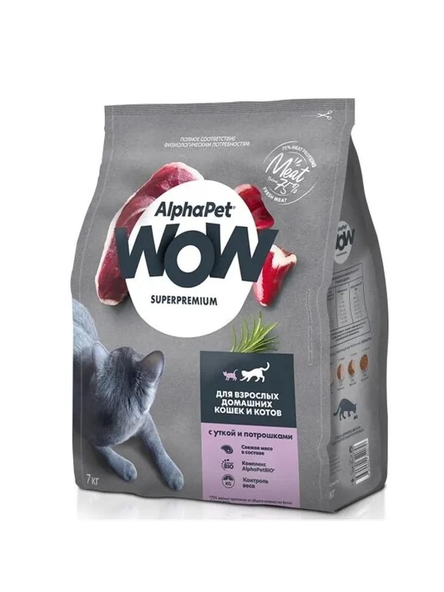 AlphaPet WOW для домашних кошек c Уткой и потрошками 7кг