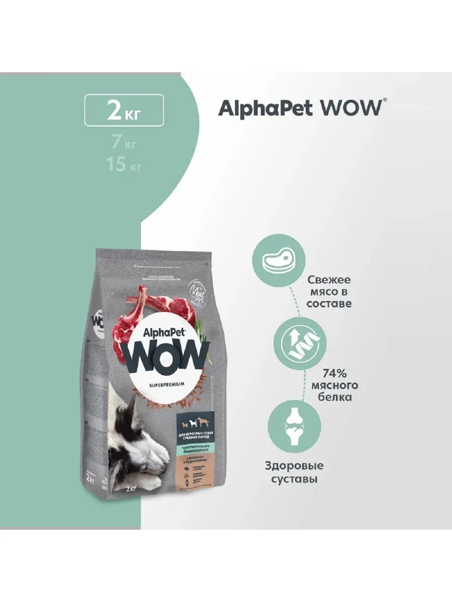 AlphaPet WOW Superpremium / Сухой полнорационный корм с ягненком и бурым рисом для взрослых собак средних пород с чувствительным пищеварением