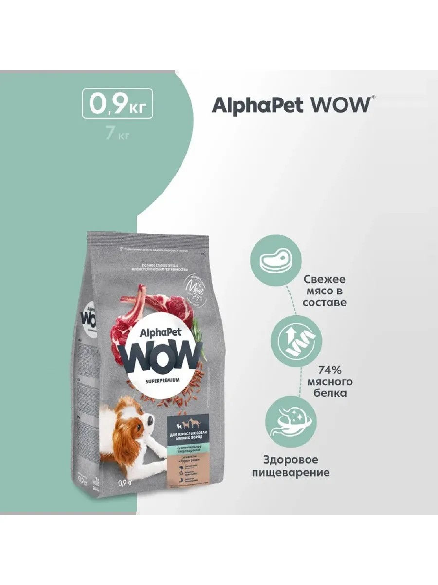 AlphaPet WOW Superpremium / Сухой полнорационный корм с ягненком и бурым рисом для взрослых собак мелких пород с чувствительным пищеварением