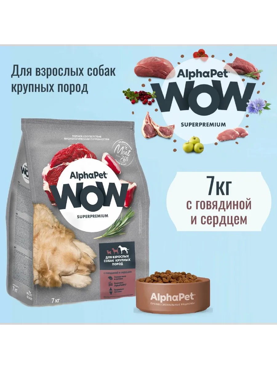 ALPHAPET WOW SUPERPREMIUM 7 кг сухой корм с говядиной и сердцем для взрослых собак крупных пород