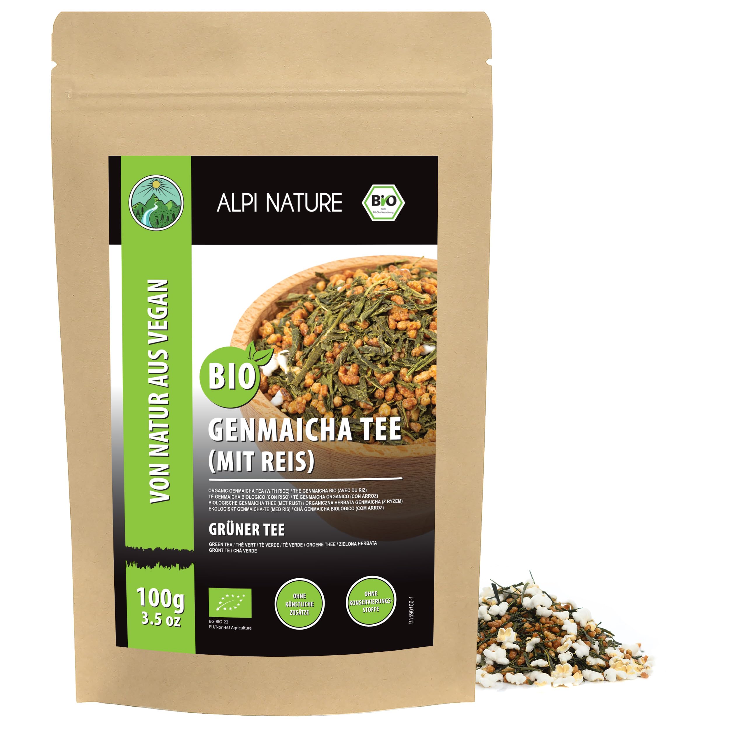 Alpi Investment OOD Alpi Nature Bio Genmaicha Tea 100 g Japanese genmaicha tea green tea with roasted rice from controlled organic cultivation organic green tea cut with rice