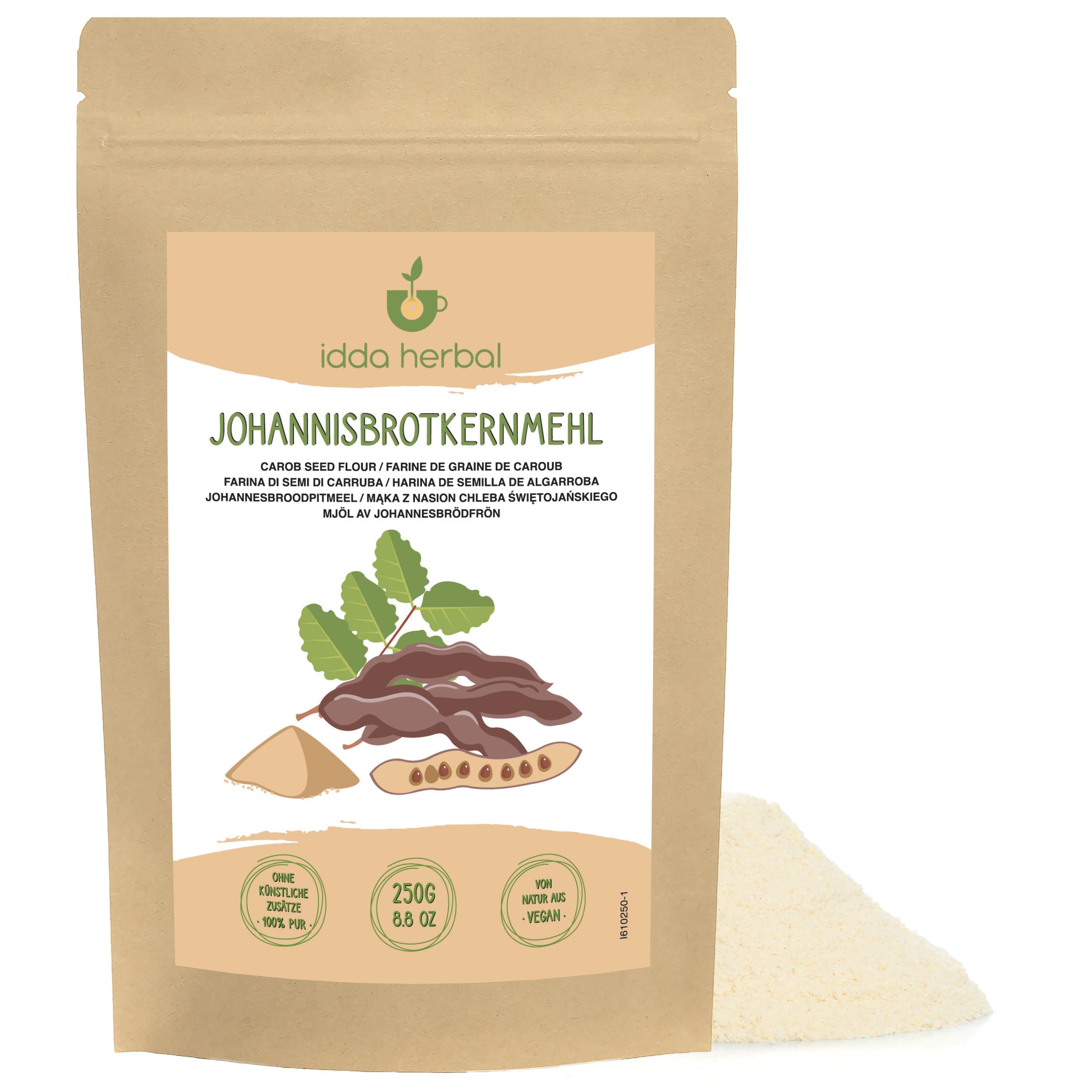 Our locust bean gum is: 100 natural vegan. Free from preservatives. Store in a cool, dry place, away from light.IDDA Herbal Johannesbroodpitmeel E410 250g, Natuurlijk verdikkingsmiddel Viscositeit 3000 CPS Onze johannesbroodpitmeel is: 100 natuurlijk veganistisch. Vrij van conserveermiddelen. Op een koele, droge plaats bewaren, uit de buurt van licht.