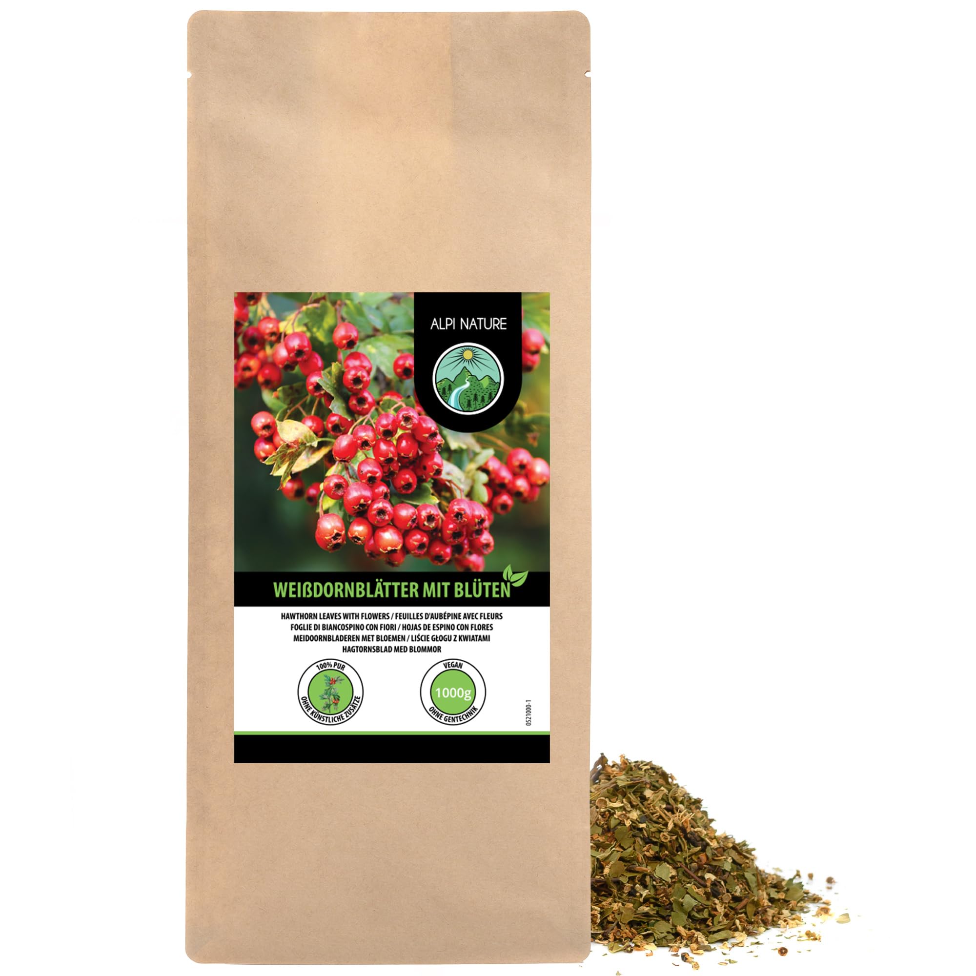 Alpi Nature Alpi Nature Hawthorn Herbal Tea 1kg Loose Leaf Tea Dried and Cut Hawthorn Leaves and Flowers
