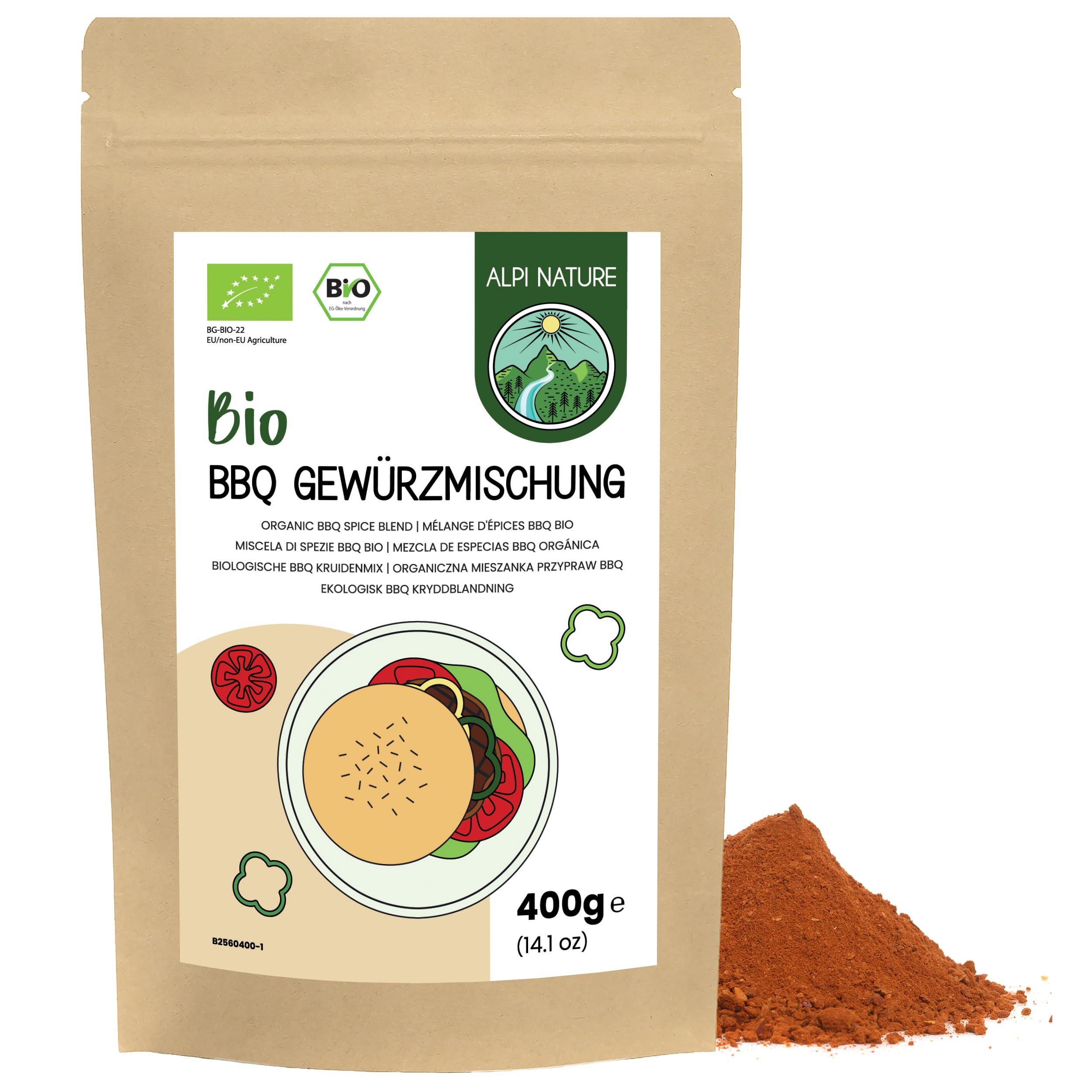 Alpi Nature Mélange d'Épices BBQ BIO 400g, bio Epices pour Barbecue, Marinade pour Barbecue, BBQ rub
