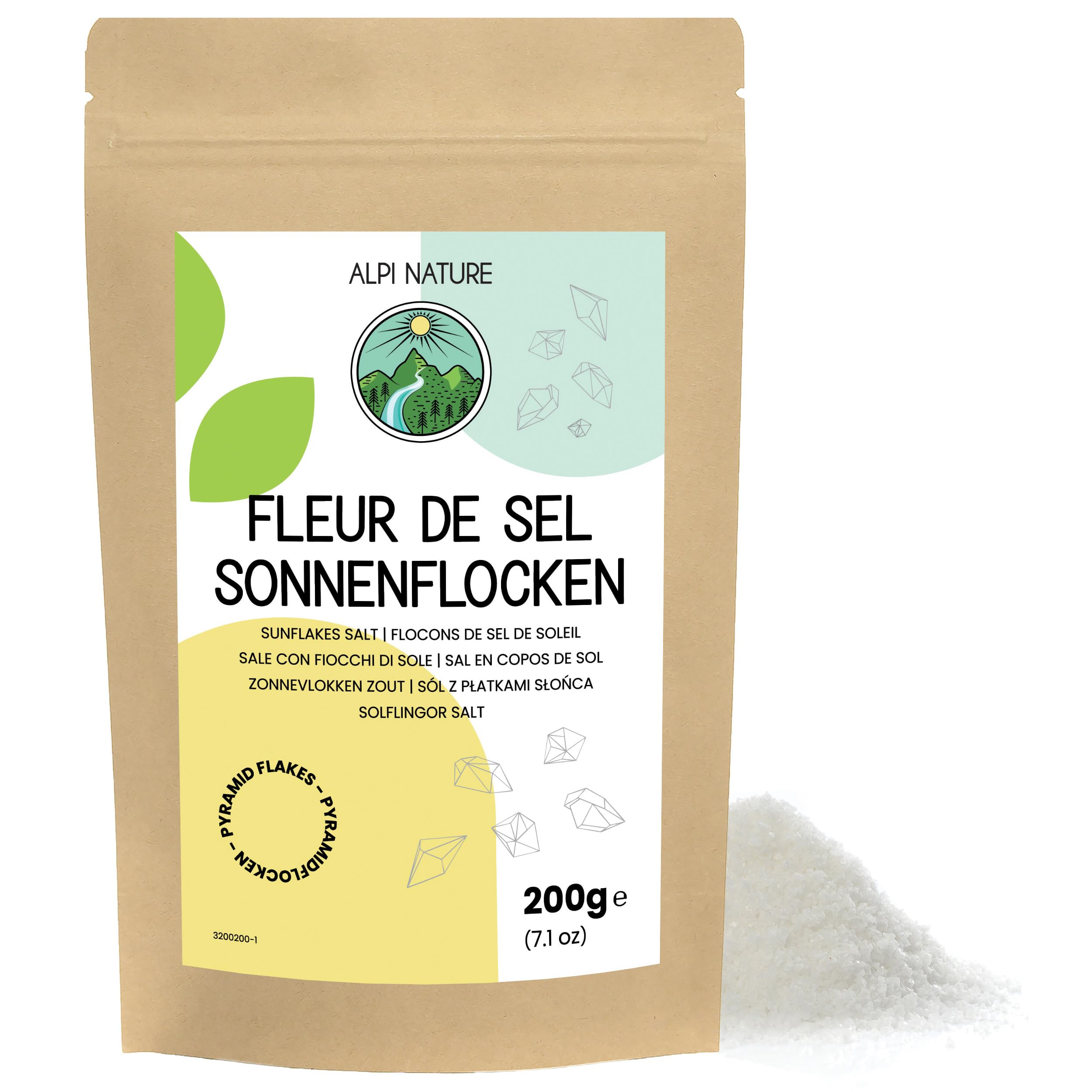 Alpi Nature Fiocchi di Sale Marino Sunflakes 200g di Alpi Nature, Fiocchi di Sale Fleur de Sel 0.5-3 mm Raccolti a Mano 200 g (1er Pack)