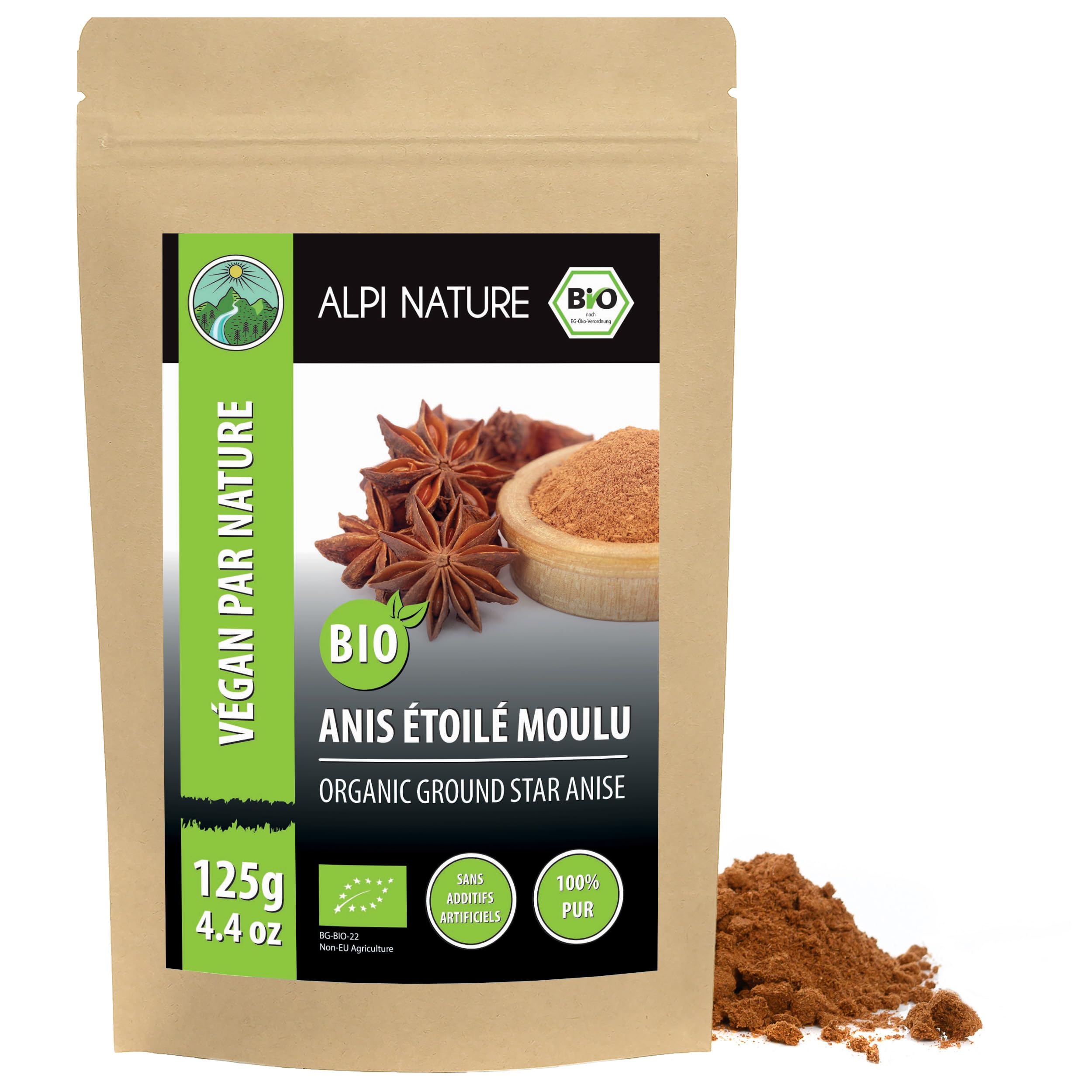 Alpi Nature Badiane Anis Étoilé BIO Moulue 125g, Poudre de Gousses de Badiane Moulues pour la Cuisine 125 GR