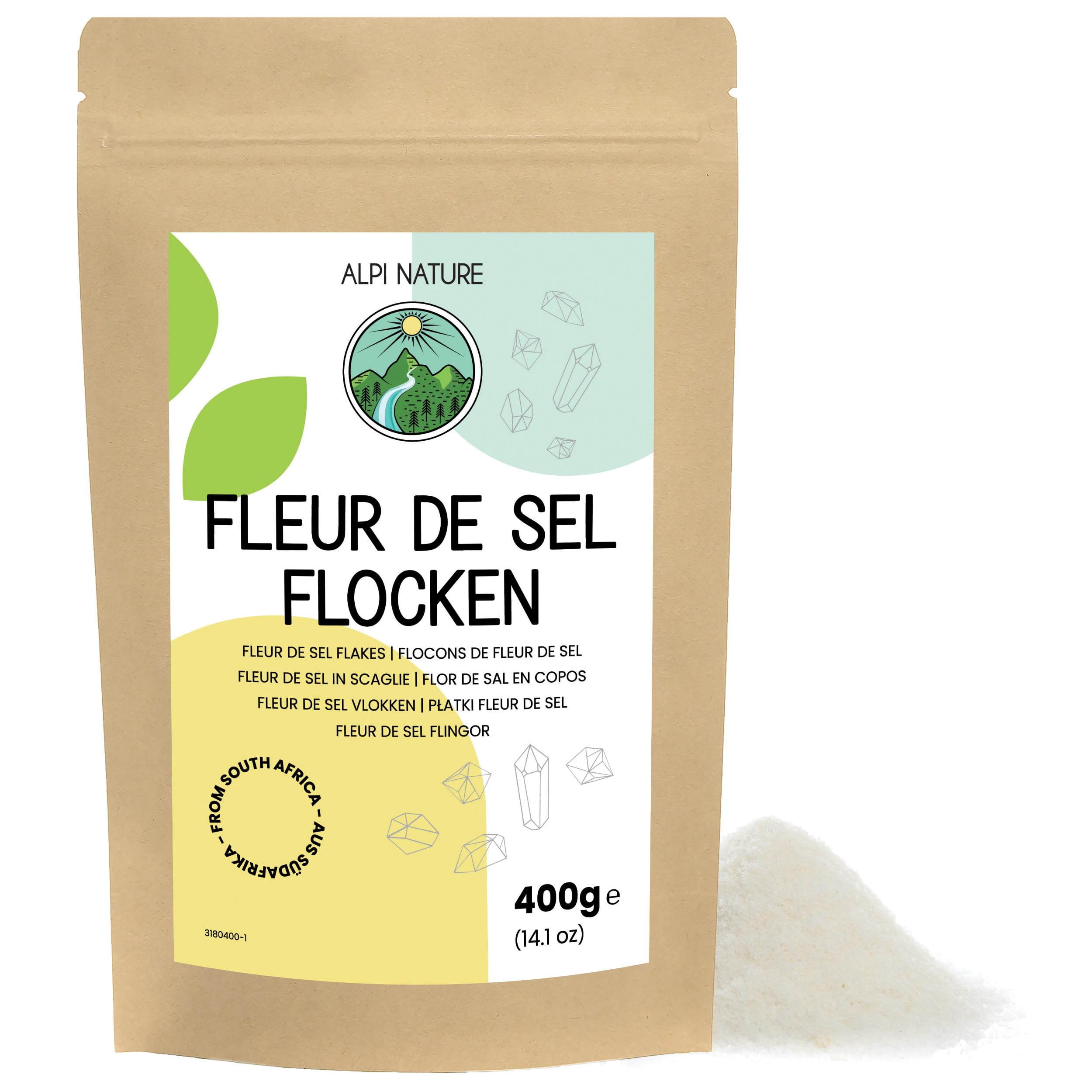 Alpi Nature Fleur de Sel Flakes 400 g by Alpi Nature Sea Salt Crystals 0.5-2 mm from South Africa for Gourmet Cuisine