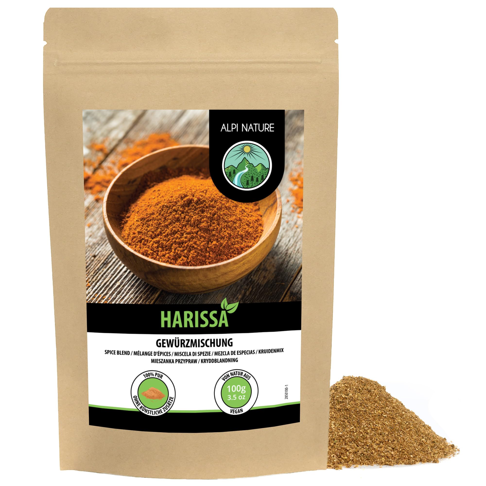 Quality Commitment: We adhere to exceptional standards throughout the entire value chain, from cultivation to packaging, to ensure consistent product quality. Naturally Sourced: Our spices come from farms that prioritize purity, ensuring that every ingredient meets the strictest quality standards. Authentic Taste: Our Harissa spice blend is made from spices that are gently dried to preserve their natural taste and aroma. It is naturally vegan and gluten-free, with no additives, preservatives, or artificial flavors. Versatile Use: Harissa spice blend seasons meats and enhances roasted vegetables, couscous, and grain-based dishes. It is also ideal for adding a kick to stews, soups, marinades, dips, and sauces. Made with coriander, spearmint, salt, chili pepper, cumin, garlic, and onion, Harissa spice blend offers a vibrant and aromatic mix of warm, earthy, and subtly spicy flavors. It is commonly used in North African and Middle Eastern cuisine to season meats, vegetables, and stews.Engagement qualité: Nous respectons des normes exceptionnelles tout au long de la chaîne de valeur, de la culture à l'emballage, afin de assurer une qualité constante des produits. D'origine naturelle: Nos épices proviennent de cultures qui privilégient la pureté, assurant que chaque ingrédient répond aux normes de qualité les plus strictes. Goût authentique: Notre mélange d'épices Harissa est fabriqué à partir d'épices délicatement séchées pour préserver leur goût et leur arôme naturels. Il est naturellement végétalien et sans gluten, sans additifs, sans conservateurs et sans arômes. Utilisation multiple: Le mélange d'épices Harissa assaisonne les viandes et rehausse les légumes rôtis, le couscous et les plats à base de céréales. Il est également idéal pour relever les ragoûts, les soupes, les marinades, les trempettes et les sauces. Le mélange d'épices Harissa, composé de coriandre, de menthe verte, de sel, de piment, de cumin, d'ail et d'oignon, offre un mélange vibrant et aromatique de saveurs chaudes, terreuses et légèrement épicées. Il est couramment utilisé dans la cuisine d'Afrique du Nord et du Moyen-Orient pour assaisonner les viandes, les légumes et les ragoûts.Alpi Nature Harissa Mélange d'Épices 100g, Assaisonnement Harissa, Épices Africaines pour la Cuisine 100 g (Lot de 1)