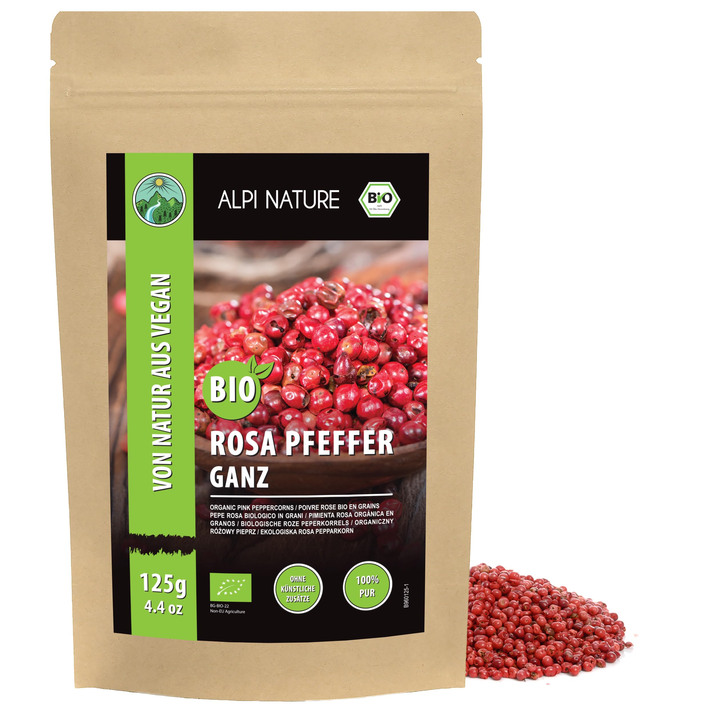 Alpi Nature Poivre Rose en Grain BIO 125g, Grains de Poivre Rose Entiers pour la Cuisine et Mélanges d'Épices 125 GR