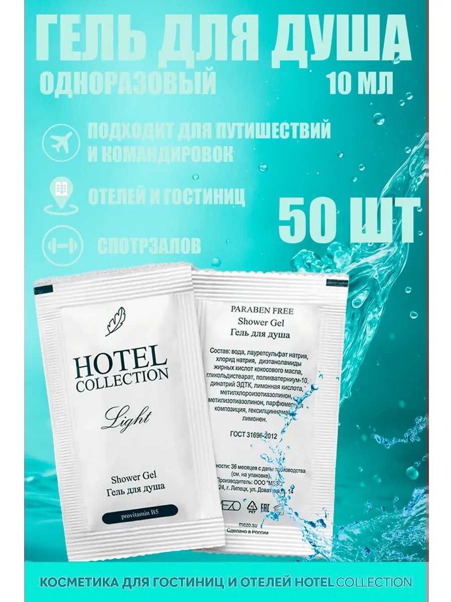 Гель для душа "Hotel collection" 50 шт в одноразовом саше объемом 10 мл - отличное решение для путешественников, ценящих свежесть и комфорт. Благодаря компактному формату, вы можете взять его с собой на любое мероприятие, обеспечивая себе чистоту и освежение в любой ситуации.