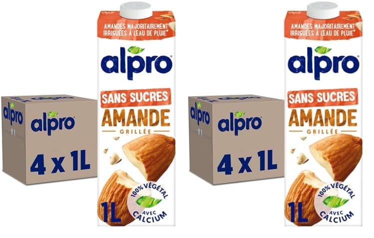 : Travel the world with our diverse range of plant-based drinks, all rich in calcium: creamy oat, roasted almond, protein-packed soy, indulgent hazelnut, and tropical coconut. There's something for everyone. Enjoy them however you like: pour almond milk over your cereal, add fiber-rich oat milk to your coffee, or stir soy milk into your sweet or savory recipes. Alpro is also a committed brand, certified as a B Corp since 2018. That's why we offer you quality products made with delicious ingredients: the soy used in our drinks is 100 French and primarily harvested in Alsace, and all our almonds are grown in the European Mediterranean region (in Spain and Italy). So whether you're a beginner or an expert in plant-based breakfasts, treat yourself by choosing Alpro. Ingredients: Water, almond (2.3 ), tricalcium phosphate, sea salt, stabilizers (locust bean gum, gellan gum), emulsifier (sunflower lecithins), vitamins (B2, B12, E, D2). P.when('A').execute(function(A) { A.on('a:expander:toggle_description:toggle:collapse', function(data) { window.scroll(0, data.expander. expander[0].offsetTop-100) }) }) Instructions: store in a cool, dark place. Once opened, refrigerate and consume within 5 days. Safety Warning: Allergen: Contains almonds. See moreLOW FAT: Naturally low in fat, with only 1.1g per 100ml. RICH IN CALCIUM AND VITAMINS: A source of calcium and vitamins D, B2, B12, and E. Calcium and vitamin D are necessary for the maintenance of normal bones. ENJOY ON ITS OWN OR IN COOKING: Enjoy Alpro Coconut Plant-Based Drink on its own or use it to create delicious sweet or savory recipes. NO ADDED SUGAR: Made with carefully roasted almonds from the Mediterranean coast, and completely free of added sugars and sweeteners. UNSUGAR-FREE ROASTED ALMOND MILK PLANT-BASED DRINK: Alpro Roasted Almond Milk Plant-Based Drink is a 100 plant-based alternative to milk (lactose-free) and is made with roasted Mediterranean almonds. The information below applies to each unit in the pack.Description du produit Voyagez avec nos différentes boissons végétales, toutes sources de calcium : avoine onctueuse, amande grillée, soja riche en protéines, noisette gourmande, coco tropicale. Il y en a pour tous les goûts. Et dégustez-les comme vous le souhaitez : du lait d'amande en cascade sur vos céréales, de la boisson à l'avoine, riche en fibres, dans votre café ou de la boisson au soja dans vos recettes sucrées ou salées. Alpro c'est aussi une marque engagée, certifiée BCorp depuis 2018. C'est pourquoi nous vous proposons de bons produits, avec de délicieux ingrédients : le soja utilisé dans nos boissons est 100 français et principalement récolté en Alsace, toutes nos amandes sont cultivées sur le bassin méditerranéen européen (en Espagne et en Italie). Alors que vous soyez novice ou un expert du petit-déjeuner végétal, faîtes-vous plaisir en optant pour Alpro. Ingrédients eau, amande (2,3 ), phosphate tricalcique, sel marin de table, stabilisants (farine de graines de caroube, gomme gellane), émulsifiant (lécithines (tournesol)), vitamines (B2, B12, E, D2) P.when('A').execute(function(A) { A.on('a:expander:toggle_description:toggle:collapse', function(data) { window.scroll(0, data.expander. expander[0].offsetTop-100) }) }) Mode d'emploi Conserver au frais et à l'abri de la lumière. Après ouverture, réfrigérer et consommer dans les 5 jours. Avertissement De Sûreté Allergène : contient des amandes Voir plusFAIBLE EN MATIERES GRASSES : Naturellement faible en matières grasses, soit 1.1g pour 100mL. RICHE EN CALCIUM ET VITAMINES : Source de calcium et de vitamine D, B2, B12 et E, Le calcium et la vitamine D sont nécessaires au maintien d'une ossature normale. A DEGUSTER SEUL OU EN CUISINE : Vous pouvez déguster la boisson végétale Alpro Coco seule ou encore pour faire de délicieuses recettes sucrées ou salées. SANS SUCRES AJOUTES : Des amandes soigneusement grillées et provenant des régions côtières de la Méditerranée, et totalement sans sucres ajoutés, ni édulcorants. BOISSON VEGETALE LAIT D'AMANDE GRILLEE SANS SUCRES : Alpro Boisson Végétale Lait d'Amande Grillée est une alternative 100 végétale au lait (sans lactose), et est à base d'amandes méditéranéennes grillées. Les informations ci-dessous s'appliquent à chaque unité du pack.Alpro - Boisson Végétale - Lait d'Amande Grillée Sans Sucres - 1L - Lot de 8x1L