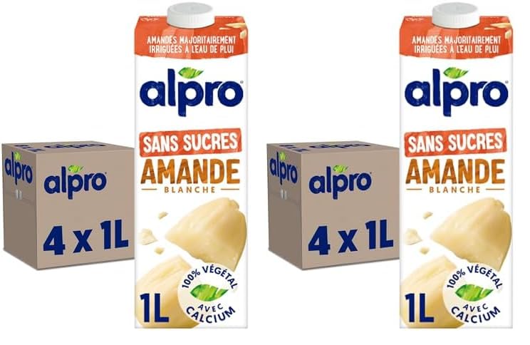 : Travel the world with our diverse range of plant-based drinks, all rich in calcium: creamy oat, roasted almond, protein-packed soy, indulgent hazelnut, and tropical coconut. There's something for everyone. Enjoy them however you like: pour almond milk over your cereal, add fiber-rich oat milk to your coffee, or stir soy milk into your sweet or savory recipes. Alpro is also a committed brand, certified as a B Corp since 2018. That's why we offer you quality products made with delicious ingredients: the soy used in our drinks is 100 French and primarily harvested in Alsace, and all our almonds are grown in the European Mediterranean region (in Spain and Italy). So whether you're a beginner or an expert in plant-based breakfasts, treat yourself by choosing Alpro. Ingredients: Water, almond (2.3 ), tricalcium phosphate, sea salt, stabilizers (locust bean gum, gellan gum), emulsifier (sunflower lecithins), vitamins (B2, B12, E, D2), natural flavoring. Safety Warning: Contains almonds. Keep refrigerated. See more