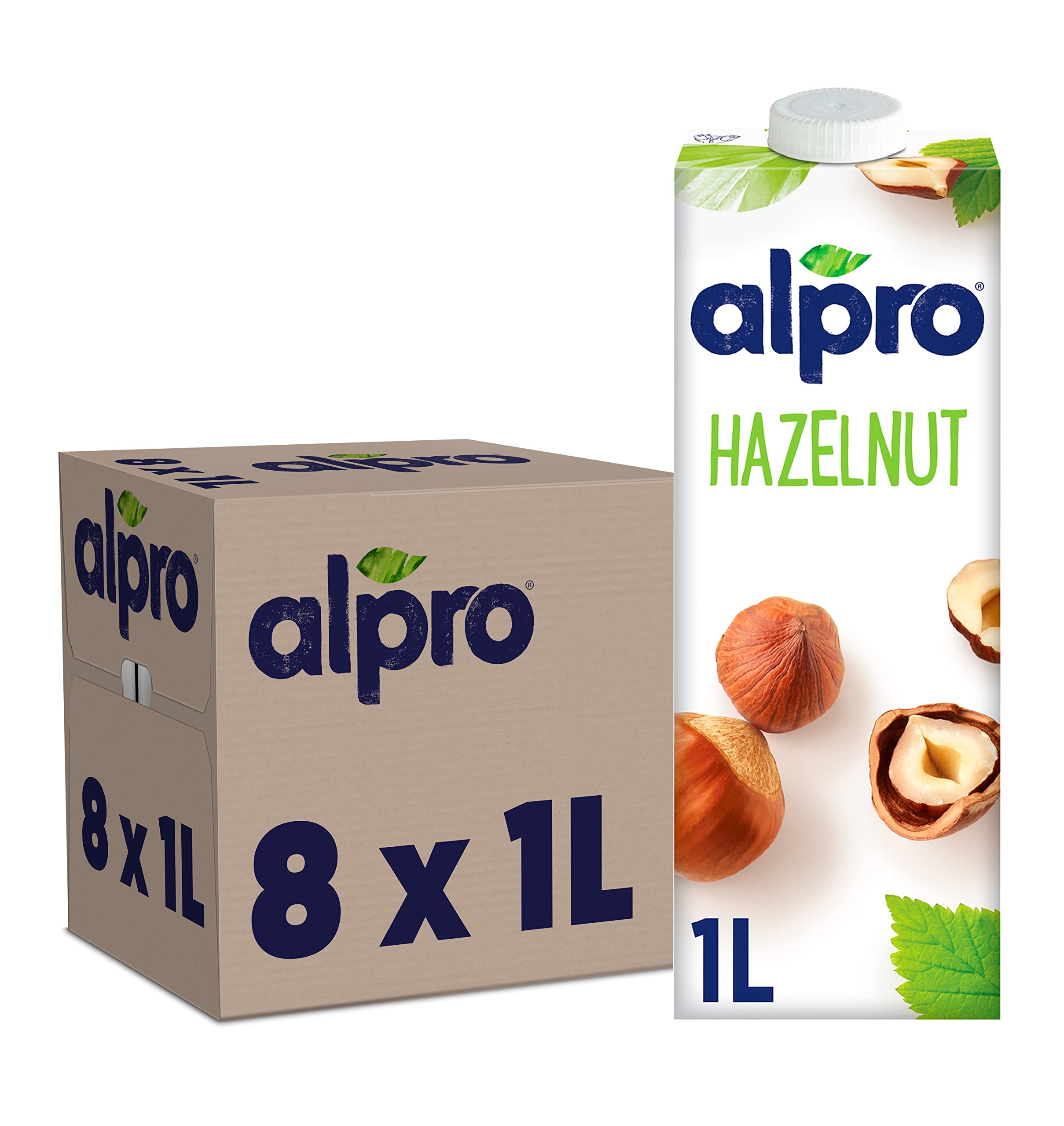 : Hazelnut drink with calcium and vitamins. How do you turn a hazelnut into a delicious drink? When we were asked if we could blend a bunch of hazelnuts with spring water to create a smooth and creamy Alpro Hazelnut Drink, we thought, "We just have to try this!" Then we tasted this little hazelnut gem of plant-based goodness, naturally low in saturated fat with 58 calories per glass , and we haven't stopped smiling since. Delicious in a homemade smoothie, mixed into hot porridge, or simply as a relaxing drink during the day. One glass 200 ml. With calcium for strong bones and teeth and vitamin E to help protect your body's cells from oxidants, Alpro Hazelnut Drink is ideal as part of a varied, balanced diet and a healthy lifestyle, which is recommended for good health. Enjoy plant-based energy. All Alpro drinks are: 100 plant-based. Naturally low in saturated fat. Source of calcium and vitamins B2, B12, and D. Lactose-free and dairy-free. No animal fats. No artificial colors, flavors, or preservatives. Ingredients: water, sugar, hazelnuts [2.8 ], calcium [tricalcium phosphate], sea salt, stabilizers [locust bean gum, gellan gum], emulsifier (ecithins), vitamins B2, B12, D2, and E. For allergens, see ingredients in bold. Directions: Refrigerate after opening. Safety Warning: May contain allergens. Keep refrigerated after opening. See more