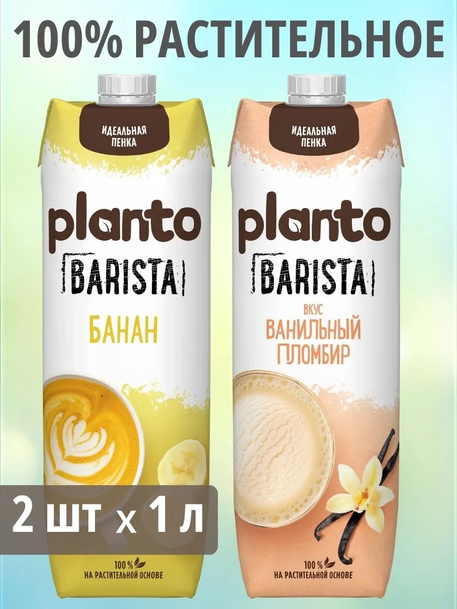 Planto – вкусные напитки на 100% растительной основе - подарят вам настоящее удовольствие и помогут по-новому раскрыть вкусы любимых блюд. Насыщенные вкусы Банан и Ванильный пломбир отлично сочетаются с кофе, легко взбиваются в нежную пенку и позволяют нарисовать креативный латте-арт.