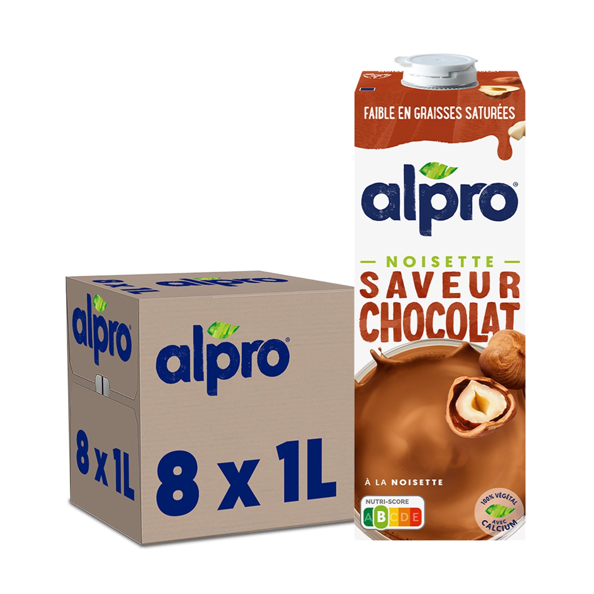 LOW IN SATURATED FAT: Naturally low in fat, 0.3g per 100mL. SOURCE OF CALCIUM: Source of calcium. Contains vitamin B2, B12 and D - Vitamin B12 contributes to the reduction of tiredness and fatigue. TREATMENT BREAK: Enjoy the deliciousness of Alpro Chocolate Hazelnut plant-based drink, to be enjoyed as a snack or during your gourmet breaks. COLORANT-FREE: Preservative-free, gluten-free and naturally lactose-free. CHOCOLATE HAZELNUT PLANT-BASED DRINK: Alpro Chocolate Hazelnut Plant-Based Drink is a 100 plant-based alternative to milk (lactose-free), and is made with hazelnuts accompanied by the deliciousness of chocolate.FAIBLE EN GRAISSES SATUREES : Naturellement faible en matières grasses, soit 0.3g pour 100mL. SOURCE DE CALCIUM : Source de calcium. Contient de la vitamine B2, B12 et D - La vitamine B12 contribue à la réduction de la fatigue. PAUSE GOURMANDE : Profitez de la gourmandise de la boisson végétale Alpro Chocolat Noisette, à déguster au goûter ou lors de vos pauses gourmandes. SANS COLORANT : Sans conservateur, sans gluten et naturellement sans lactose. BOISSON VEGETALE CHOCOLAT NOISETTE : Alpro Boisson Végétale goût Chocolat Noisette est une alternative 100 végétale au lait (sans lactose), et est à base de noisettes accompagnés de la gourmandise du chocolat.