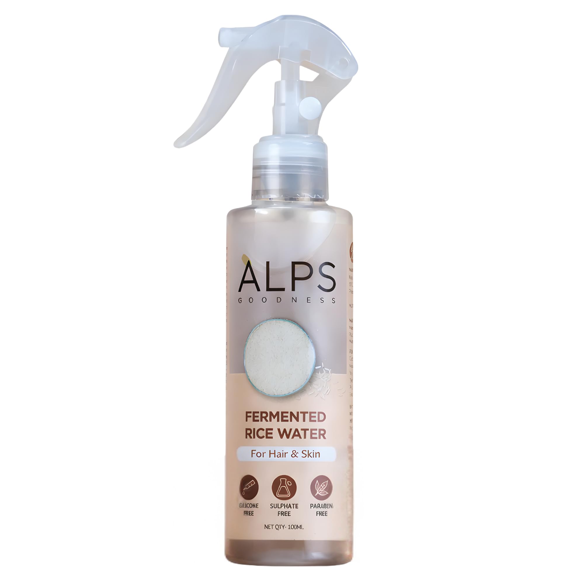 Bring your hair and skin back to life with Alps Goodness Fermented Rice Water Spray, a lightweight daily mist inspired by Korean beauty rituals. Crafted with the goodness of fermented rice water, this multi-use spray helps revive dull hair, refresh tired skin and restore a naturally healthy glow — all without heaviness or sticky residue. Designed for today's fast-paced routines, this versatile mist works as a facial toner, scalp refresher and leave-in conditioner in one simple step. Whether your skin feels tight after cleansing or your hair looks frizzy and flat by mid-day, just a few spritzes help in hydration, improve smoothness and enhance softness for a more polished look. The gentle, fast-absorbing formula layers effortlessly over your existing serums, creams and styling products, making it perfect for busy mornings, gym touch-ups or evening refreshment. It supports better manageability, tames frizz and leaves hair feeling light and comfortable, while skin feels calm, hydrated and revitalized. Suitable for all hair and skin types, this fermented rice water spray is made for everyday use by both men and women. Keep it in your travel bag, vanity or office drawer for hydration whenever your hair and skin need it most.Gentle Everyday Care: Formulated for all hair and skin types, this fermented rice water spray supports smoother strands and hydrated-looking skin without heaviness or buildup. Perfect for men and women, it fits easily into your gym bag, travel kit or vanity to deliver consistent, simple self-care every single day. All-in-One Daily Mist: Forget complicated multi-step routines. This easy-to-use mist layers effortlessly over serums, creams or styling products and absorbs quickly with no sticky residue. Use it morning or night to keep hair and skin feeling hydrated, comfortable and cared for even on your busiest days. Deep Hydration: Designed to work as a facial toner, scalp refresher or leave-in conditioner, this multi-use spray revives moisture whenever hair feels dry or skin feels tight. A few spritzes help restore comfort, softness and a fresh, dewy, Korean glass skin inspired glow without weighing down fine hair. Controls Frizz Roughness: Daily exposure to humidity, heat styling and pollution can make hair feel rough and unmanageable. This hydrating mist helps tame frizz, improve overall texture and refresh dry, tight skin at the same time, giving you a polished, well-groomed look whether you're at work, the gym or heading out. Restores Dull Hair Skin: This fermented rice water spray delivers an moisture that helps revive lifeless hair and tired-looking skin. The lightweight formula supports smoother texture, natural shine and softness without leaving greasy buildup, making it ideal for everyday care when your routine feels heavy but your hair and skin still look flat.