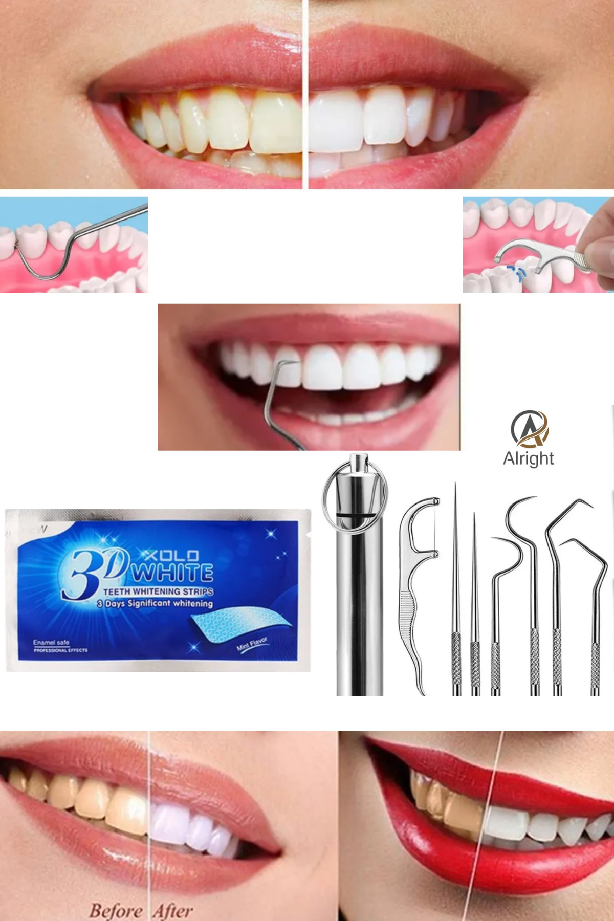 Alright 1 Teeth Whitening Strip and 7 Piece Tube Metal Teeth Cleaning Dental Health