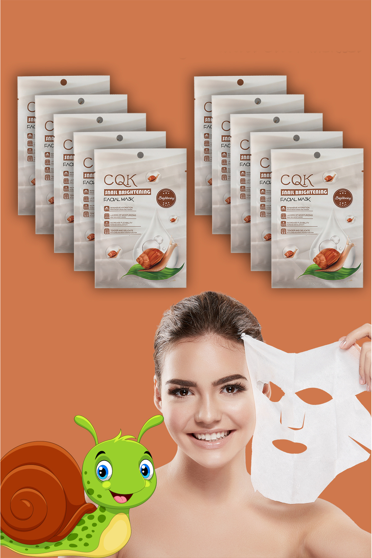 Alright 10 Pieces Snail Mask Brightening Hydration Centella Asiatica Snail Brightening XLM106