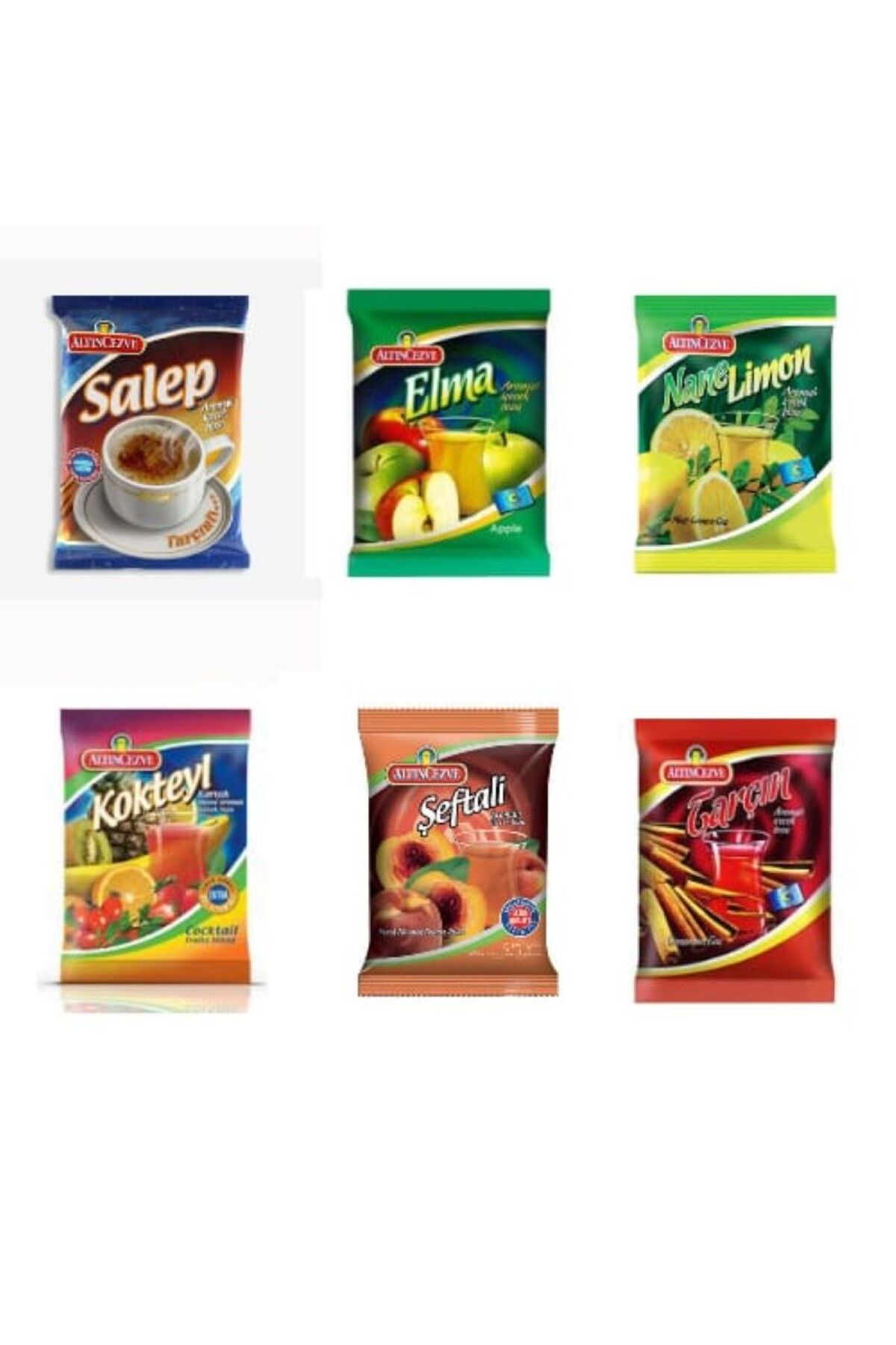Alt ncezve SALEP APPLE MINT LEMON COCKTAIL PEACH CINNAMON FLAVORED DRINK POWDER 250 GR 6-PIECE MIXED