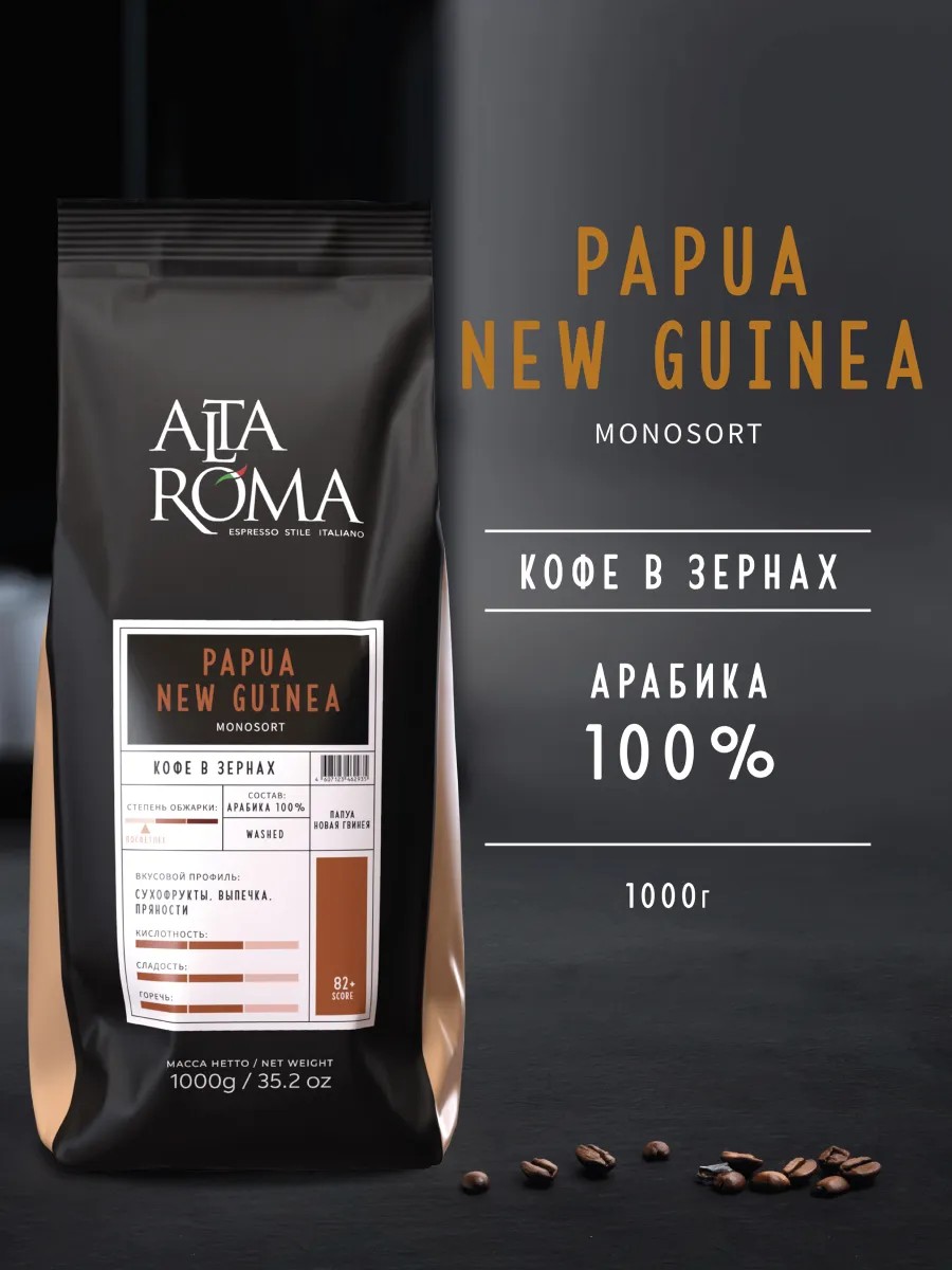 ALTA ROMA Кофе в зернах 1 кг Speciality Papua New Guinea арабика 100%