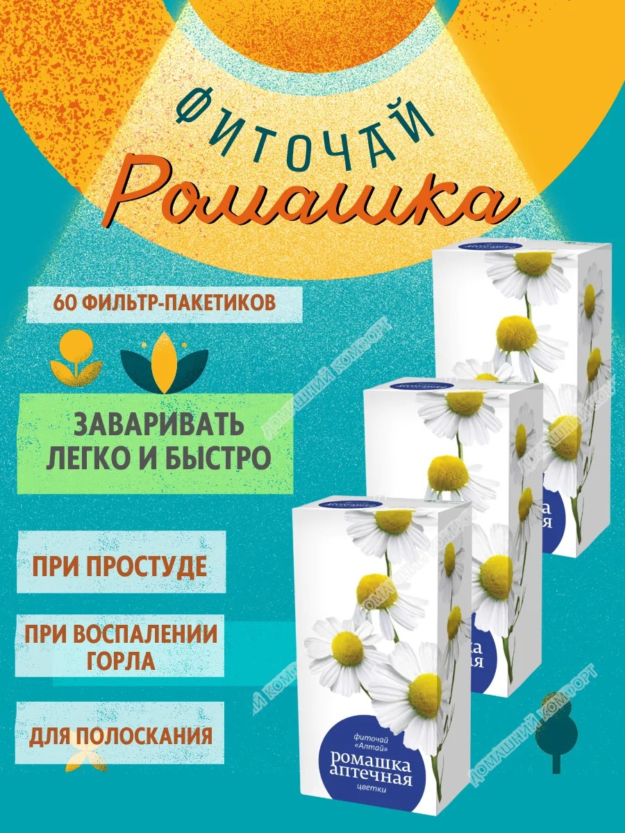 | Комплектация | фиточай алтай ромашка аптечная цветки 1.5 n20 ф/п; 3 шт |