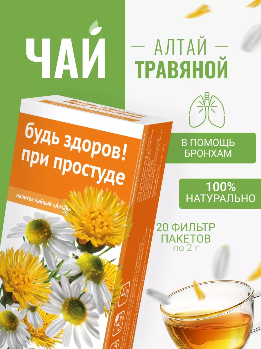 Напиток чайный Будь Здоров! при простуде - это 100% натуральный травяной чай, собранный из трав Алтая и созданный для вашего здоровья.