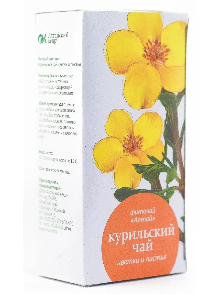 Алтайский кедр Курильский чай цветки и листья, 20 пакетиков