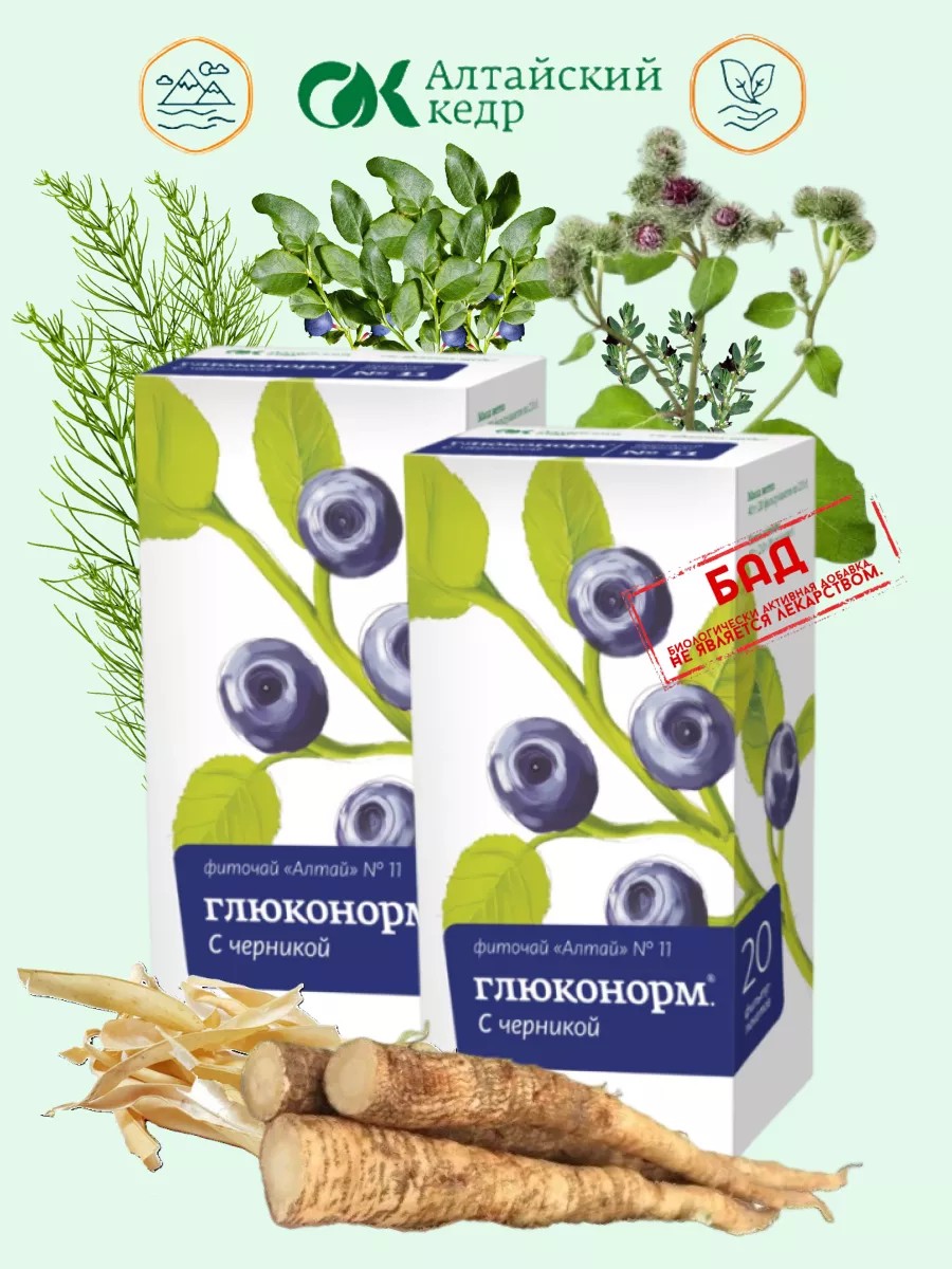 Алтайский кедр Фиточай Алтай №11 Глюконорм с черникой 20 ф/п, 2 уп.