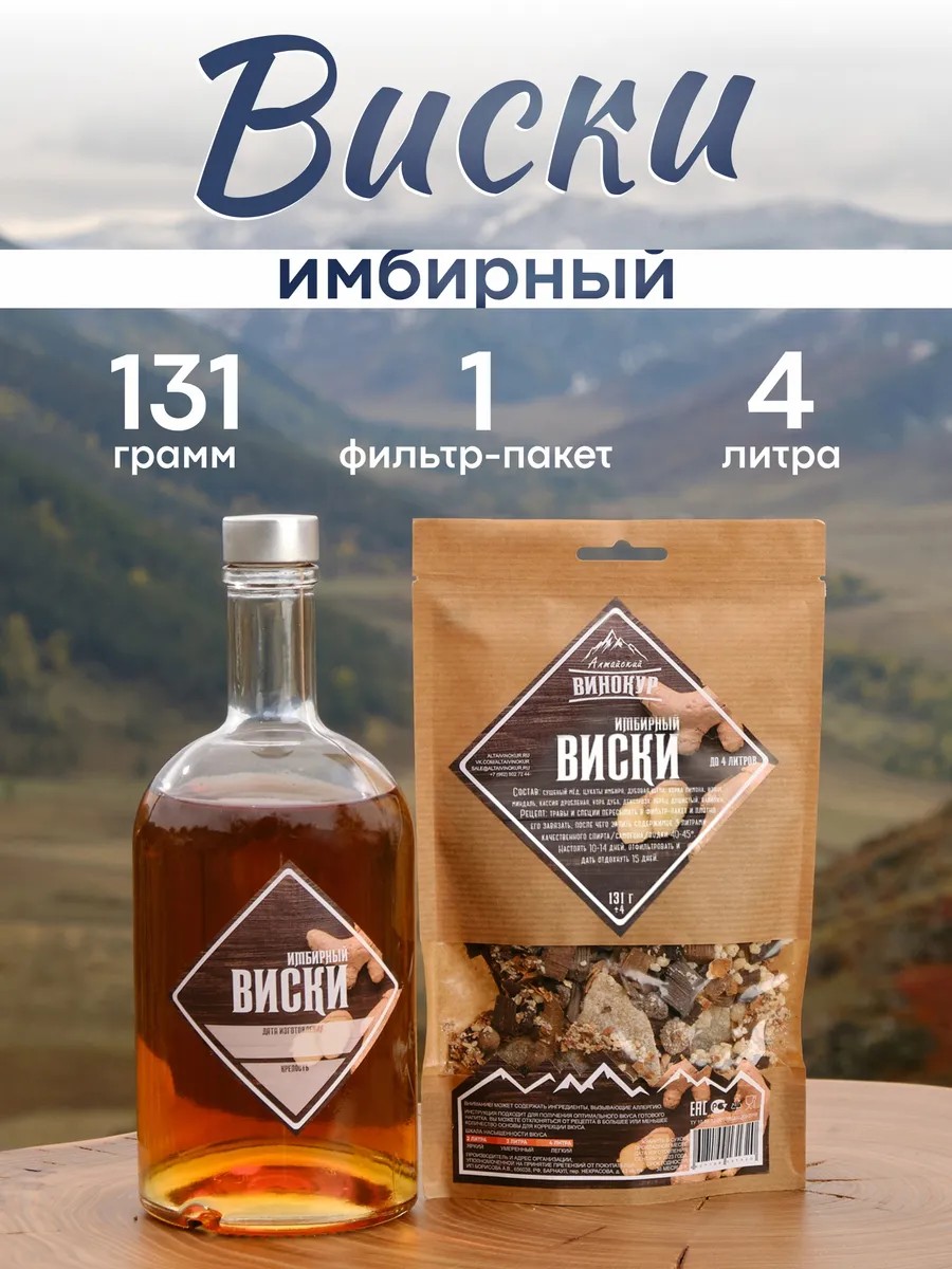 "Имбирный Виски" от Алтайского Винокура - уникальный набор с неповторимым вкусом и ароматом. Уникальное сочетание имбиря, меда, лимонной цедры и пряностей придает этому напитку неповторимую гармонию и незабываемый вкус.
