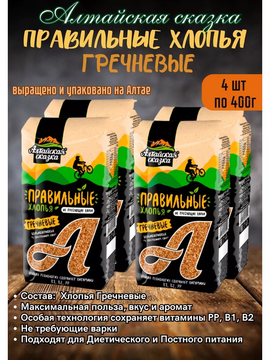 Гречневые хлопья Алтайская Сказка вкусное и питательное блюдо. Для всех, кто любит гречку, это настоящий подарок, ведь хлопья завариваются всего 3 минуты и сохраняют при этом свой особенный аппетитный аромат и насыщенный вкус. Гречневые хлопья содержат широкий набор витаминов, макро- и микроэлементов. Вкусные и нежные хлопья понравятся каждой хозяйке и придутся по вкусу и детям, и взрослым. Гречневые хлопья быстрого приготовления созданы из калиброванной крупы высшего сорта.Сохраняется вся ценность цельного зерна, которое благотворно влияет на пищеварение и иммунитет. Теперь на вашем столе всегда будет натуральный продукт, максимально сохранивший все свои полезные свойства. Гречка не содержит ГМО, без глютена, поэтому идеальна как для приготовления классической молочной каши, так и безмолочных, вегетарианских или безглютеновых блюд. Крупа гипоаллергенная , богата железом , подходит для диетического и детского питания.