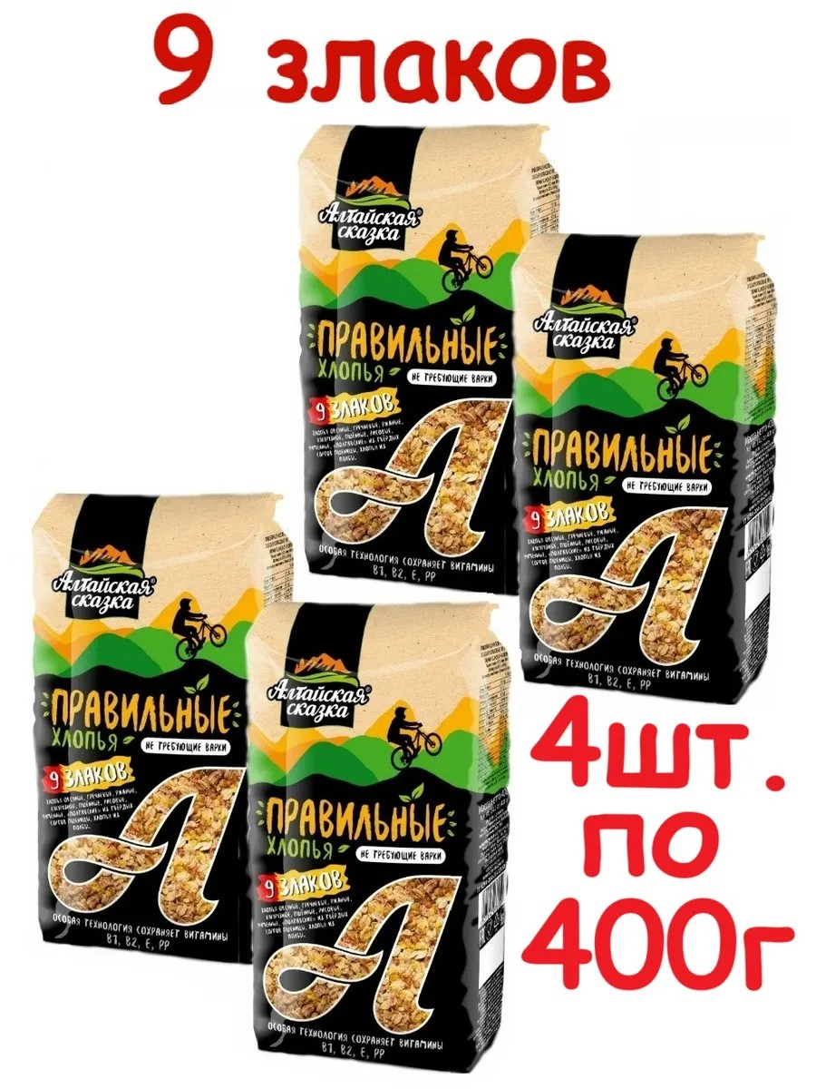 алтайская сказка Правильные хлопья 9 злаков, 4шт. по 400г