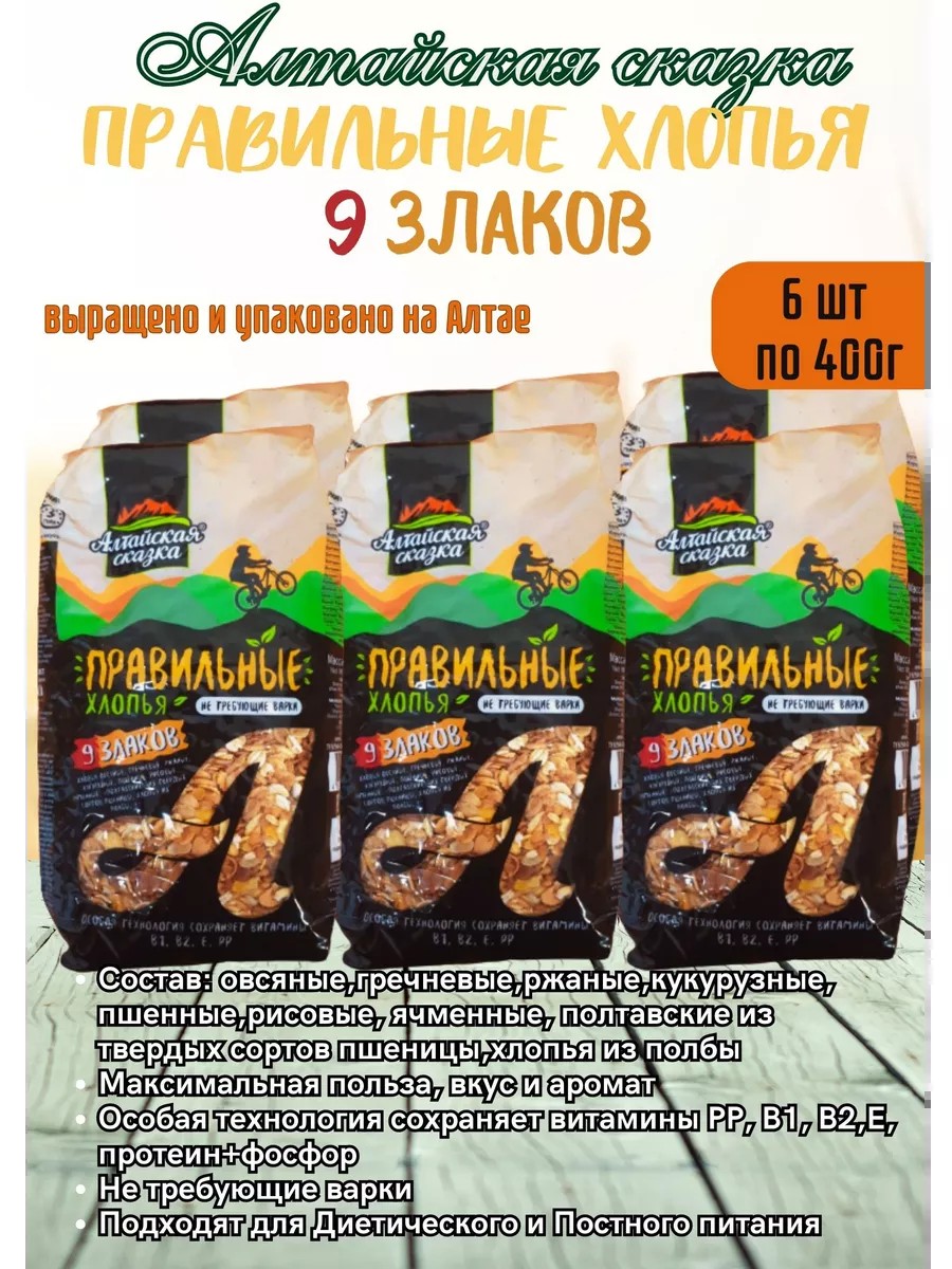 алтайская сказка Мультизлаковые Эко-Хлопья 9 злаков 6шт по 400г