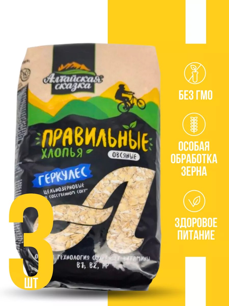 алтайская сказка Хлопья овсяные Геркулес для завтрака без сахара 400 г, 3 шт