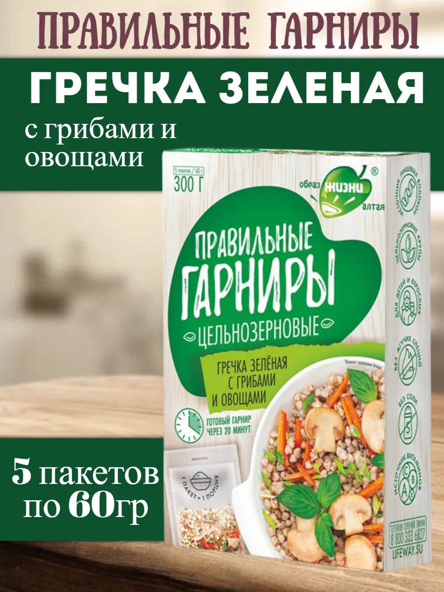 Правильные гарниры цельнозерновые! Гречка зеленая с грибами и овощами в варочных пакетиках "Образ жизни Алтая" - это идеальное решение для тех, кто ценит здоровое питание и ищет вкусные и несложные блюда.