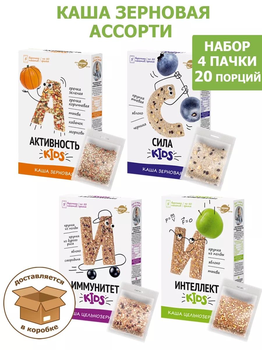 В составе набора 4 каши. Каждая имеет уникальный состав, обогащенный витаминами и минералами.