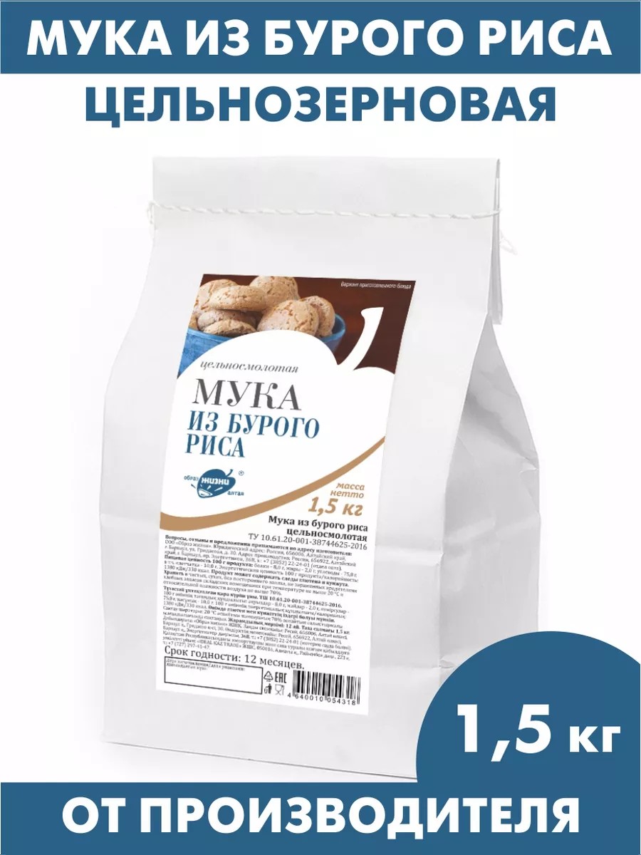 Образ жизни Алтая Мука рисовая, из бурого риса, цельнозерновая, 1,5 кг