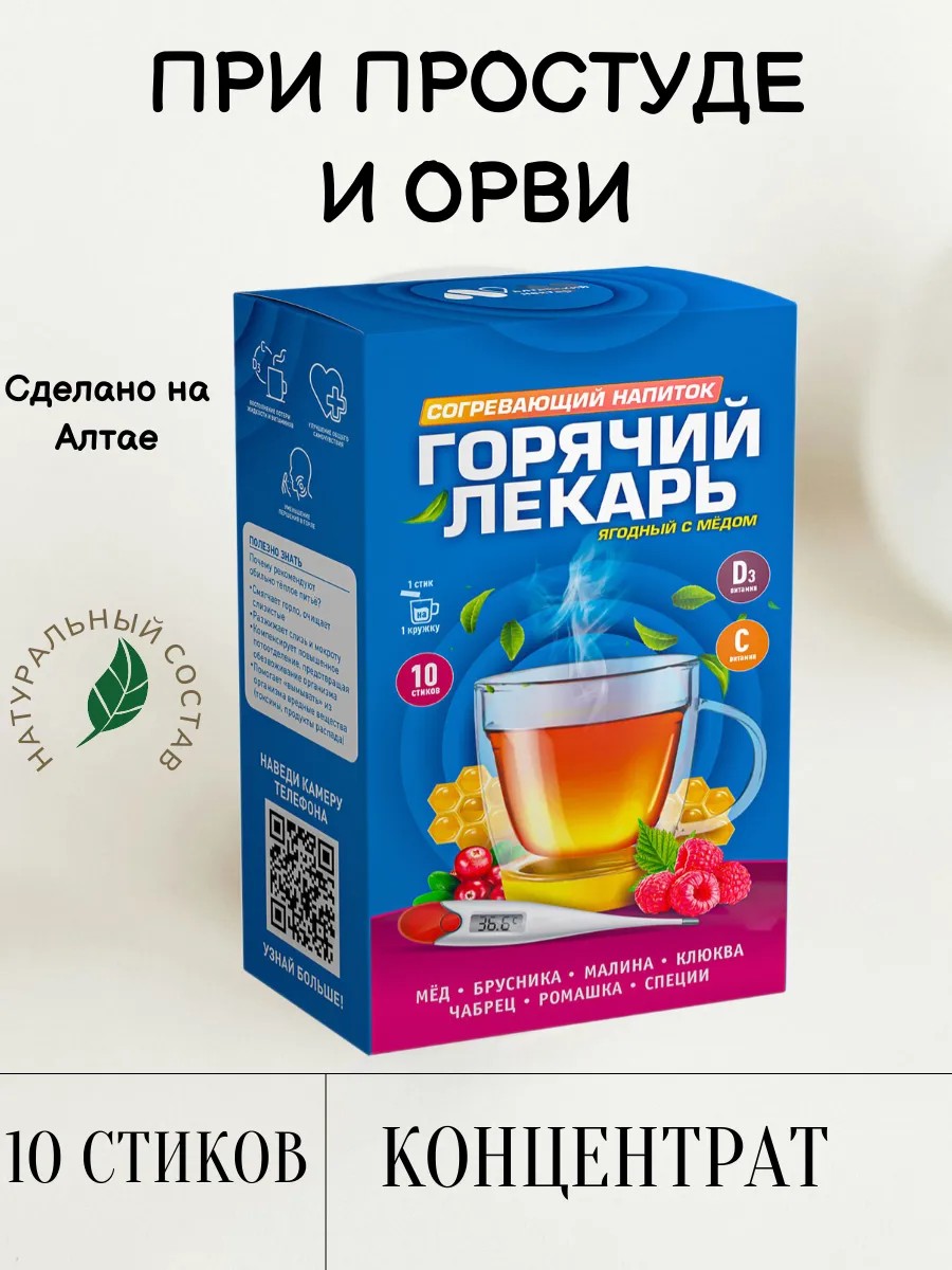 "горячий лекарь" — биологически активная добавка к пище, жидкий концентрат в стиках. Этот согревающий напиток создан на основе натуральных компонентов, включая витамины C и D3, необходимые для крепкого иммунитета. Натуральное теплое питье без антибиотиков и жаропонижающих в составе.