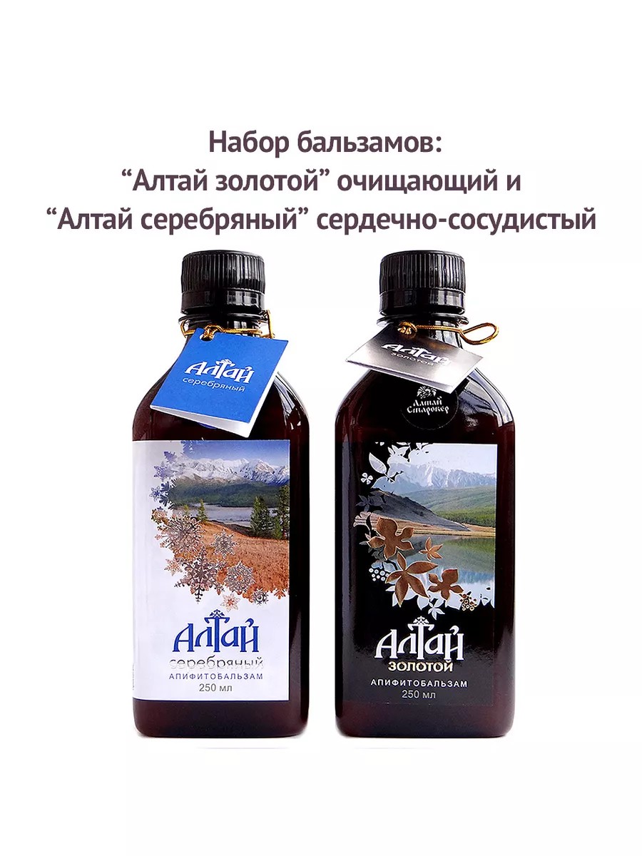 Набор бальзамов "Алтай Золотой" для желудка и печени очищающий (250 мл) + "Алтай Серебряный" сердечно-сосудистый (250 мл).