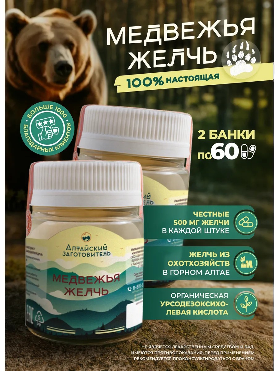 Bear bile tablets are made from high-quality raw materials sourced in the Altai Krai. The gallbladders of bears harvested by licensed hunters are used.