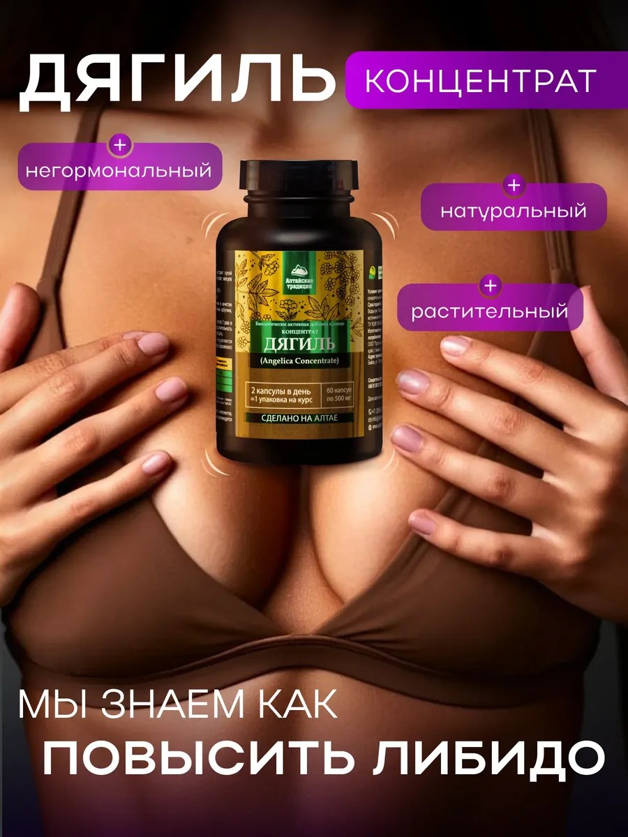 Раскройте свою женскую энергию с «Концентратом Дягиль» – природным эликсиром Алтая, созданным для тех, кто хочет сиять здоровьем, красотой и гармонией! Этот натуральный комплекс с экстрактом дягиля, L-аргинином и дамианой поддерживает женское благополучие, помогая вам чувствовать себя уверенно и комфортно каждый день. Погрузитесь в силу природы и вдохновите себя на лучшее!
