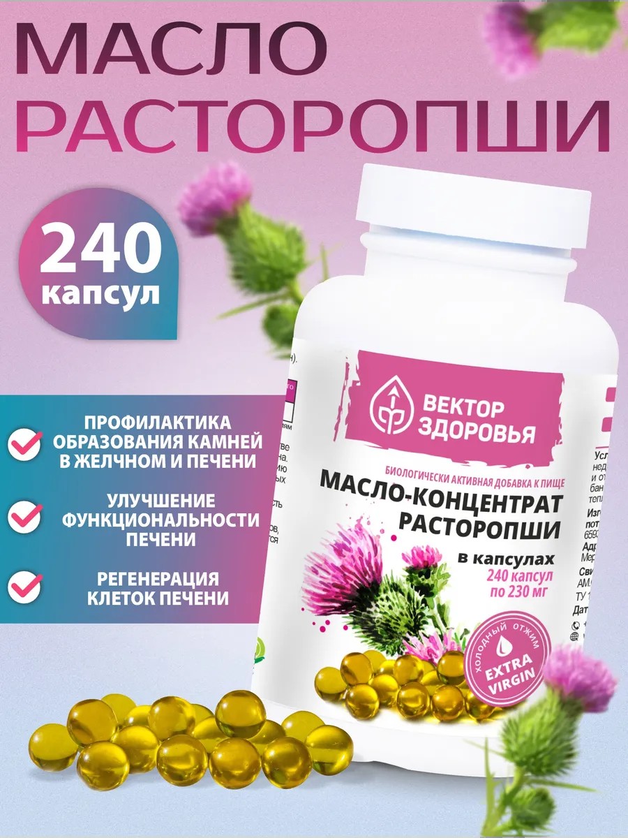 Ощутите защиту природы в каждом дне! Масло расторопши — это не просто капсулы, а ваш надежный щит для здоровья и энергии. Полученное методом холодного отжима из семян расторопши, оно сохраняет всю природную силу, чтобы поддерживать вас изнутри. Погрузитесь в заботу природы с этим уникальным комплексом!