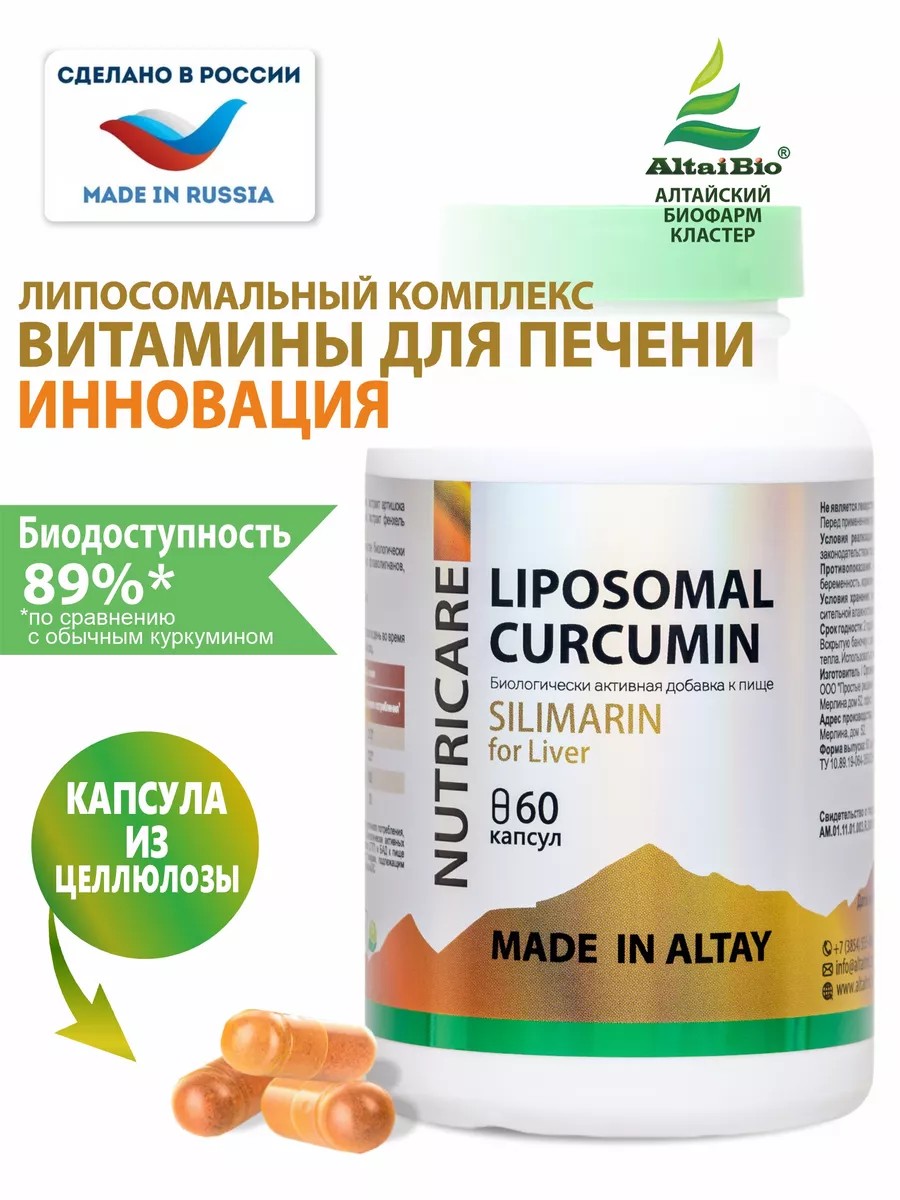 Алтайские традиции Витамины для печени Липосомальный куркумин Силимарин