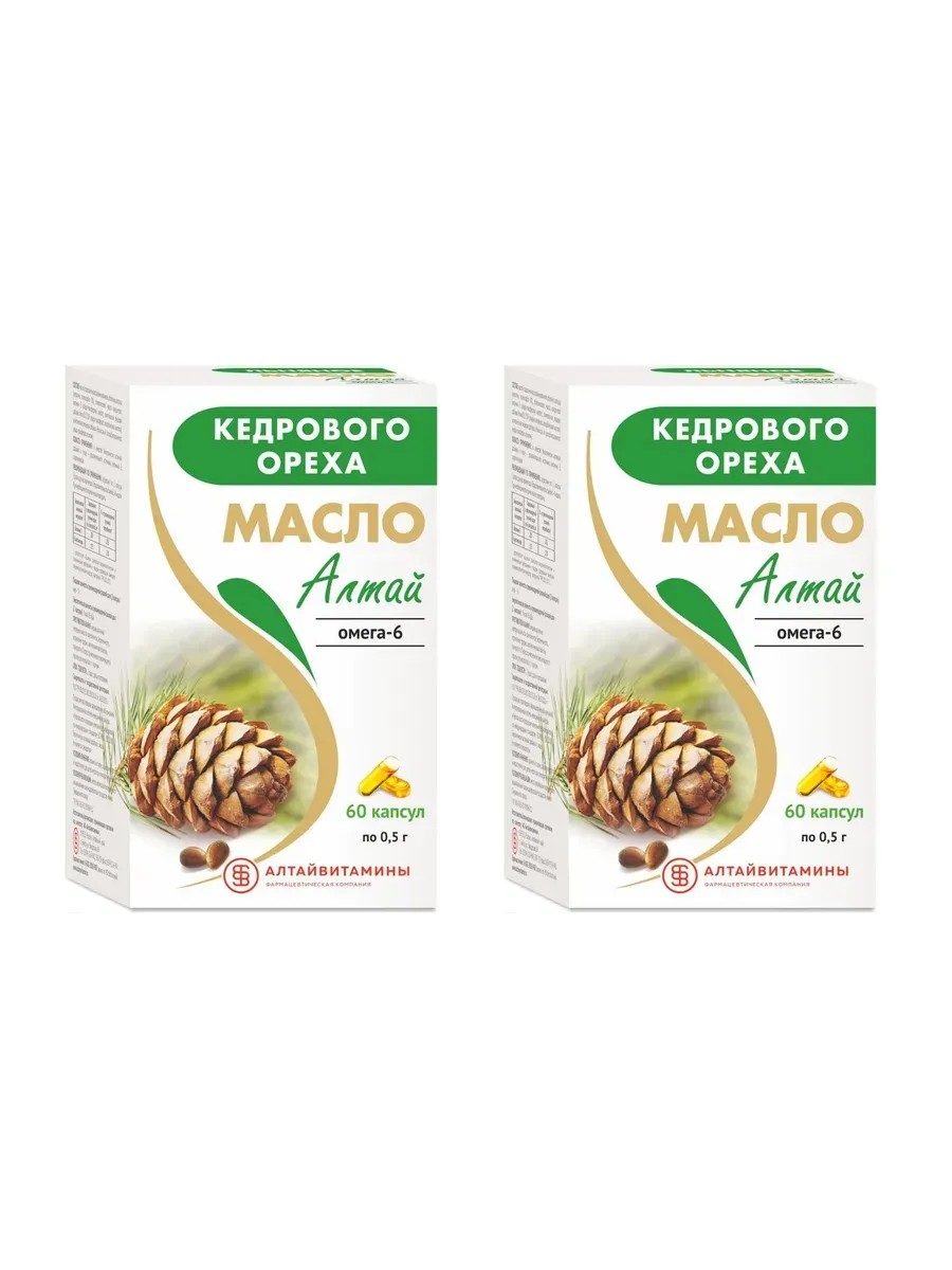 Алтайвитамины Масло кедрового ореха Алтай, 60 капсул по 0,5 г х 2 уп