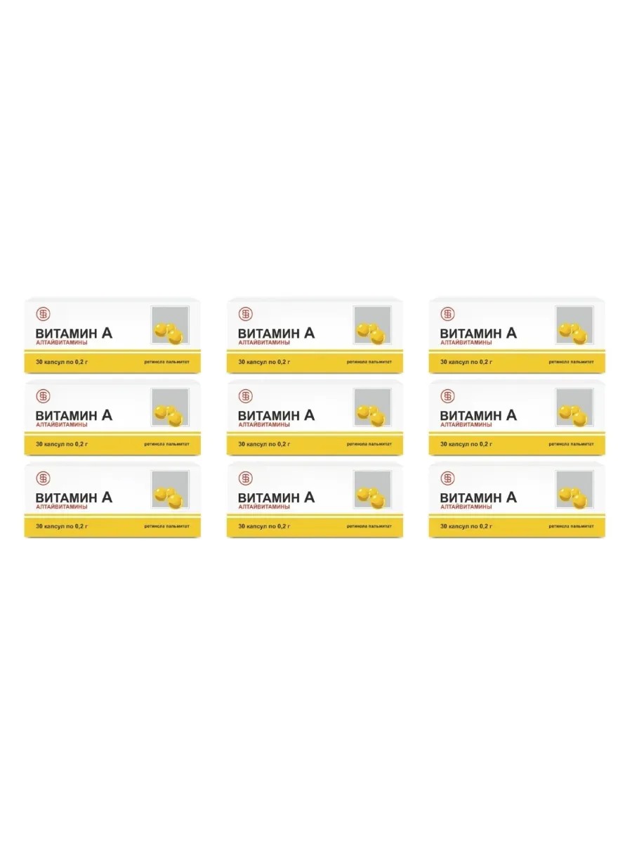 Алтайвитамины Витамин A (ретинола пальмитат), 30 капсул по 0,2 г х 9 уп