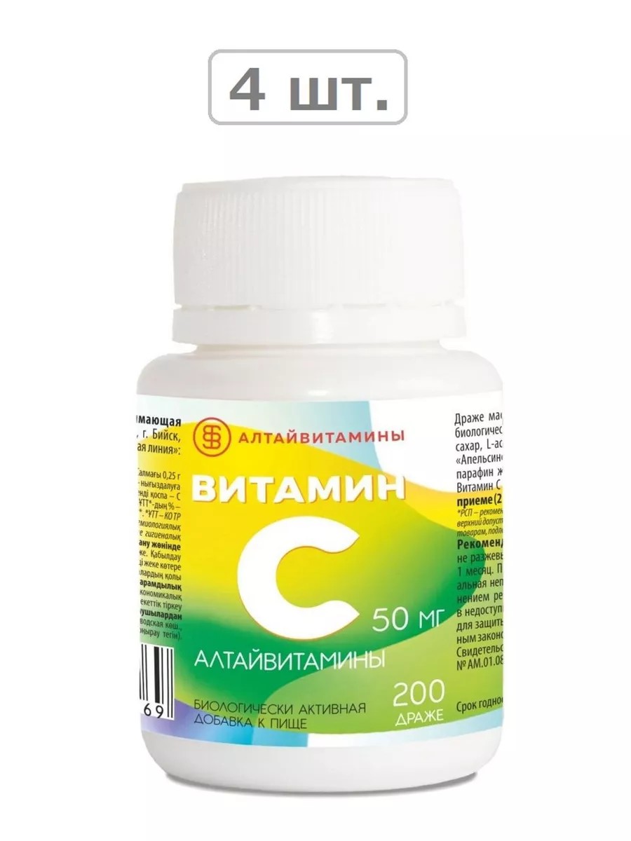 Алтайвитамины витамин с 50мг n200 драже по 0,25г-4шт
