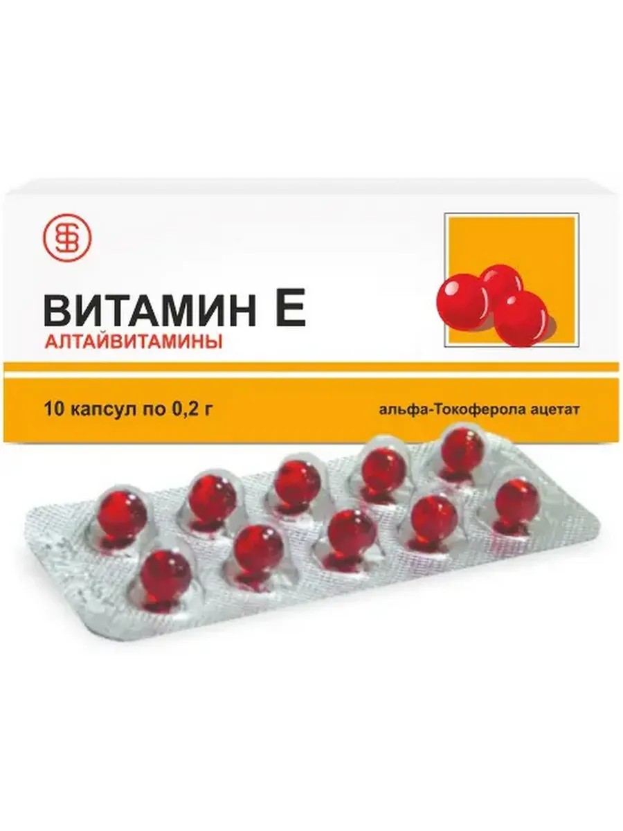 Составальфа-Токоферола ацетат, подсолнечника масло, желатин, глицерин, сорбит; вода очищенная, краситель азорубин; метилпарагидроксибензоат