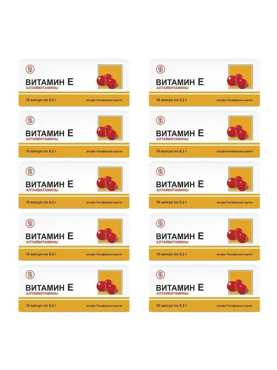 Алтайвитамины Витамин Е (альфа-Токоферола ацетат), 10 капс по 0,2г х 10 уп