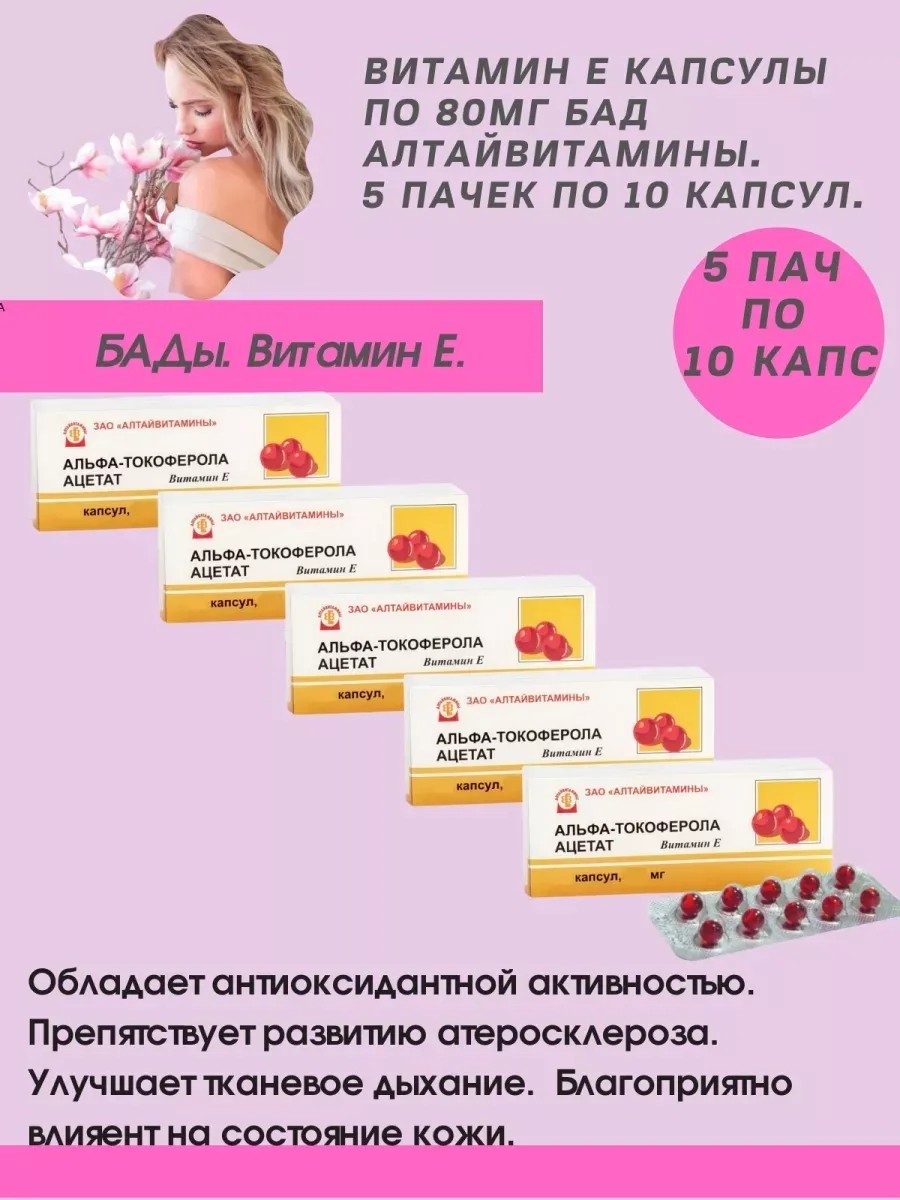 Витамин Е капс/80мг Алтайвитамины. 5 пач по 10 капсул.-6 шт.